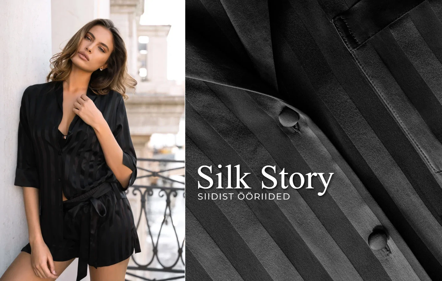 Ajatu siidikollektsioon, mis räägib lugu elegantsist ja naiselikkusest. Peenelt läikiv siid paitab nahka, langedes kergelt ja voolavalt nagu õrn embus. Luksuslikult mugavad ööriided loovad hetke, kus ilu ja harmoonia saavad üheks. Saadaval kahes toonis – klassikaline must ning hõrgult kuldne beež.