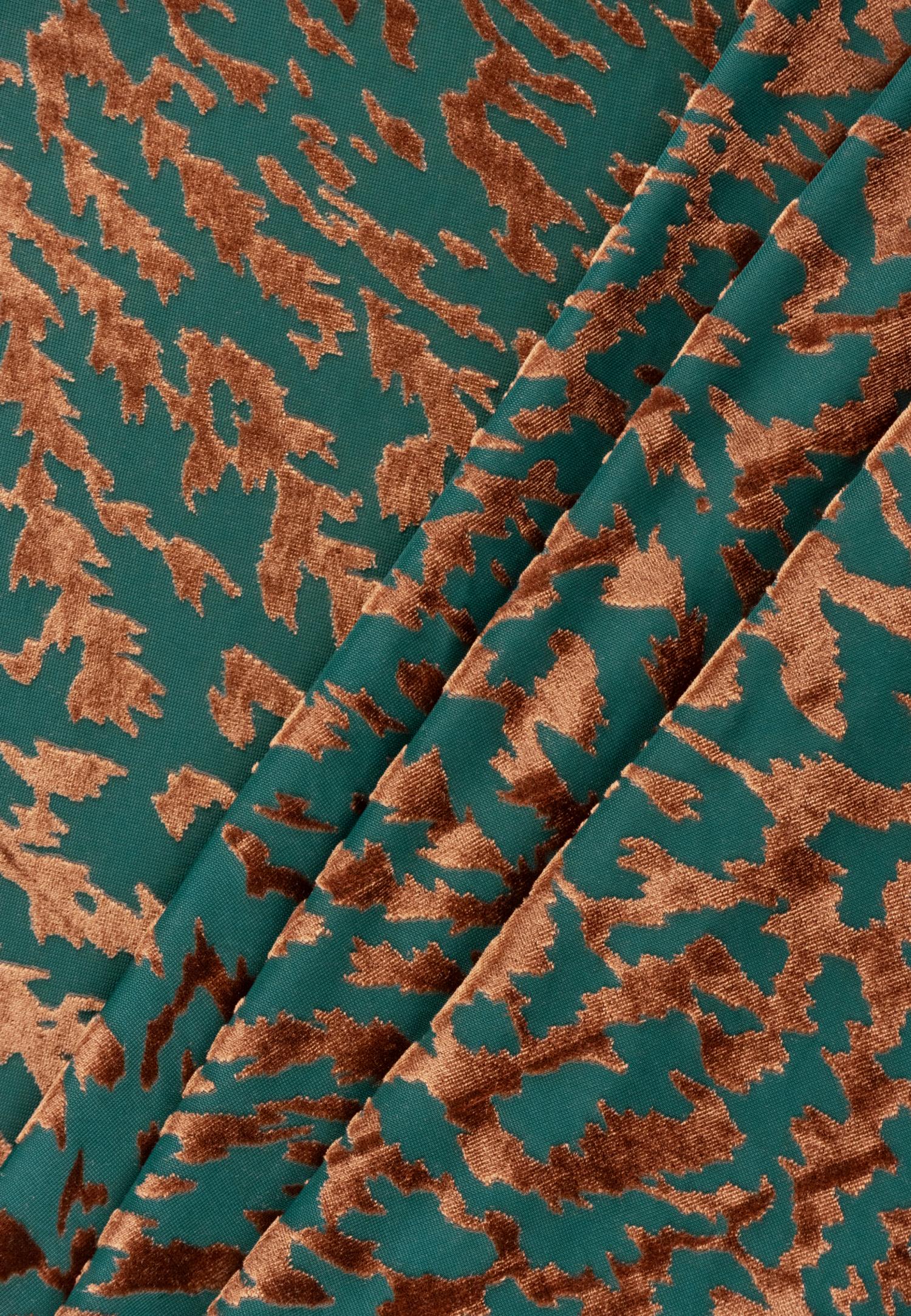 Curious about new innovations in the swimwear fabric range? In NATURE’S MELODY series you meet with crafted from recycled polyester yarns, our extra soft touch jacquard velvet fabric offers sustainability without compromising style. Featuring petroleum dark green and rusty orange hues, it boasts a unique palette. As light dances on the velvet inserts, they resemble a fusion of animal print and corals, which adds an exotic allure. Modern simplicity is achieved through the combination of velvet elastic bands, copper hardware trims, and special V-shaped wires gracefully enhancing décolleté and back waistlines.