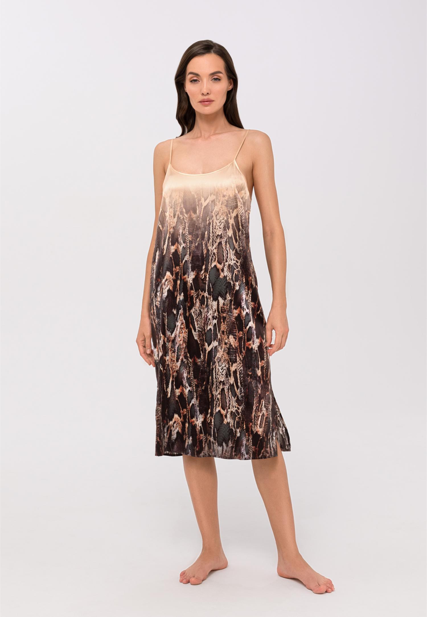 Wireless moulded push-up cup balconette top with ilicone tape on front and back. Detachable and length-adjustable shoulder straps. Clasp fastening at back. Allover printed.