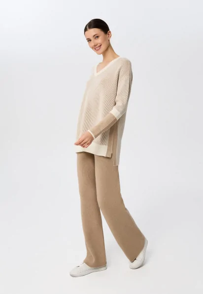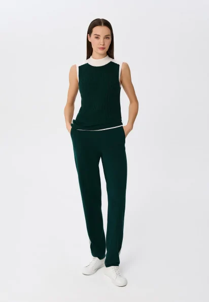 Cashmere high-waisted long pants