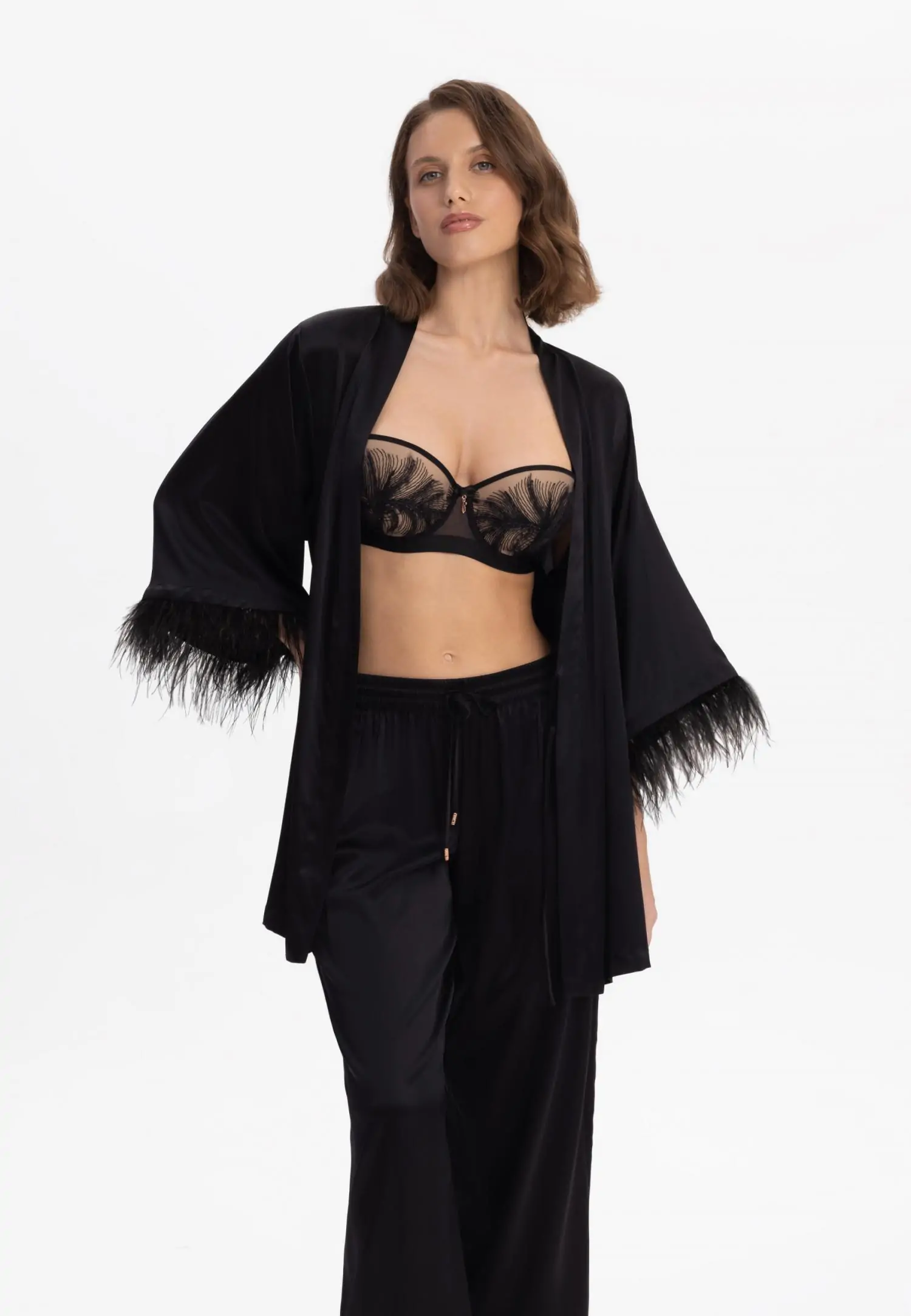 The TENDERLY YOURS silk series is a sincere pledge of quality and enduring style. The collection's luxurious silk feels incredibly soft against the skin. The airy feather trim adorning sleeves and tro...