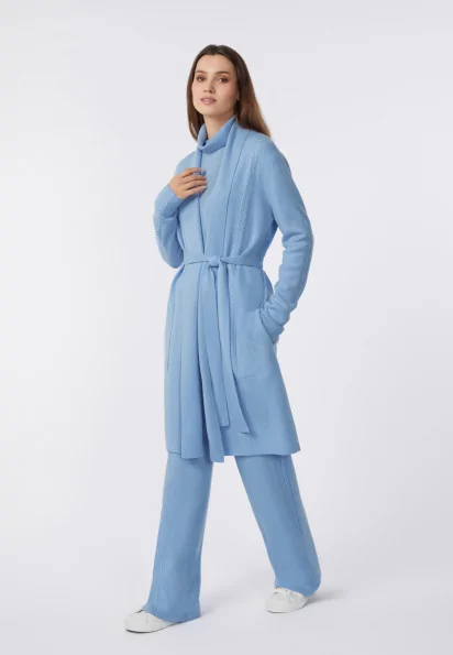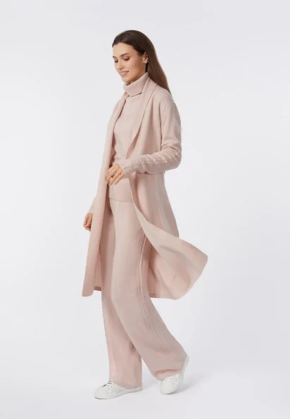 Poolpikk palmikkoe detailidega kašmiirist kardigan