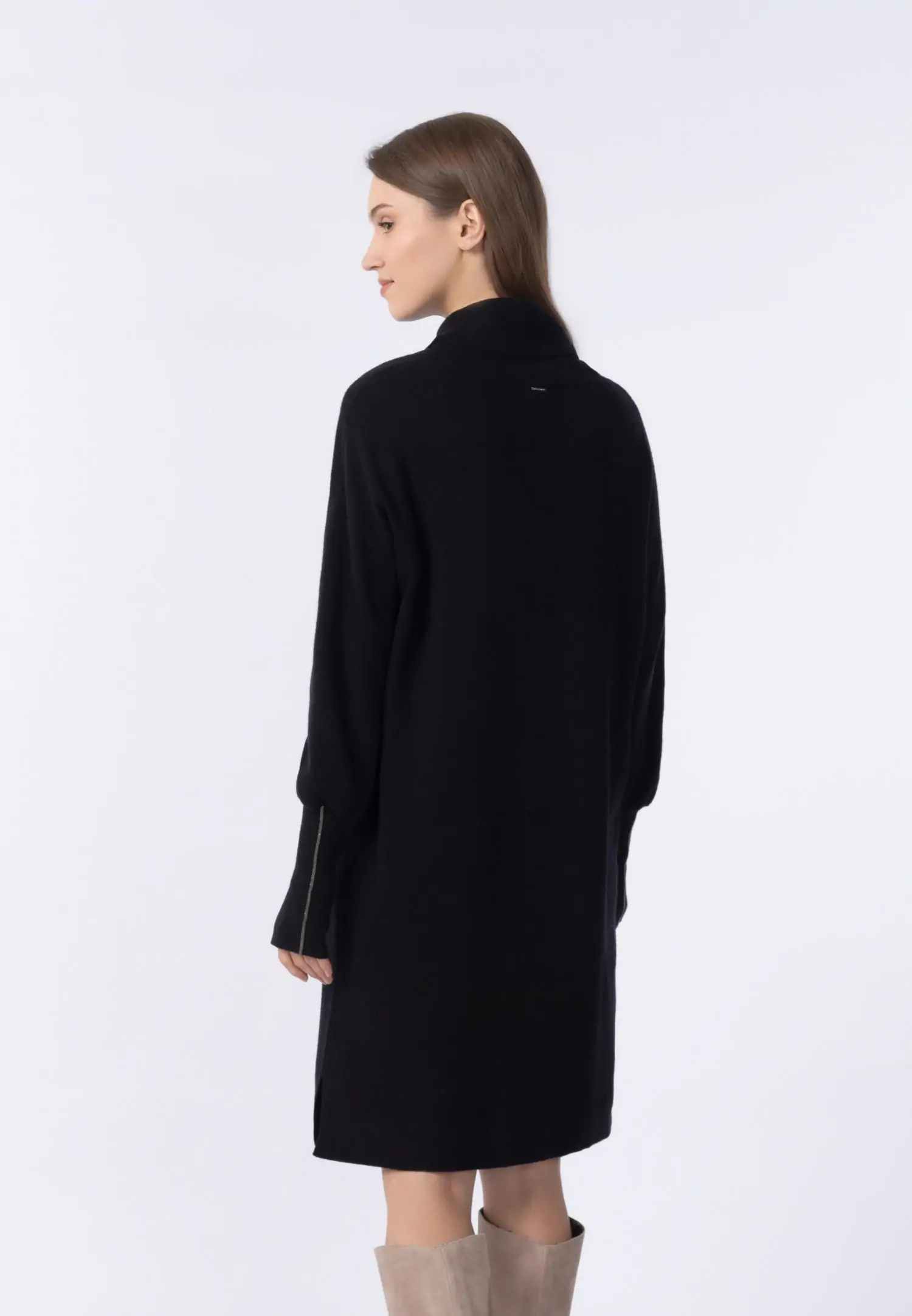 Elegantsete puhvvarrukatega sirgelõikeline veidi põlvedest ülespoole ulatuv tuunika on kootud luksuslikust kašmiiri- ja meriinovillasegu lõngast, mis annab tootele siidise pehmuse ja erakordse soojuse. Avar ning kaunilt langev kõrge krae lisab sviitrile elegantsi. Pikendatud õlajoon lisab sviitile avarust ja mugavust. Soonikkoes varrukasuul olev peen tumehall metallik-tooni kettdetail rõhutab džempri luksuslikkust ja erilisust. Mansettidel olev pöidlaava lisab mängulisust. Tuunika on kootud interlok-koes, mille puhul kudumi mõlemad pooled on ühesuguse sileda ja tiheda pinnaga. See kude hoiab hästi vormi, imab paremini niiskust, säilitab soojust ning venib vähem. Kombineeri koos samasse seeriasse kuuluvate kõrge vöökohaga pükstega või kanna kleidina. Toode on uhkusega disainitud Eestis!