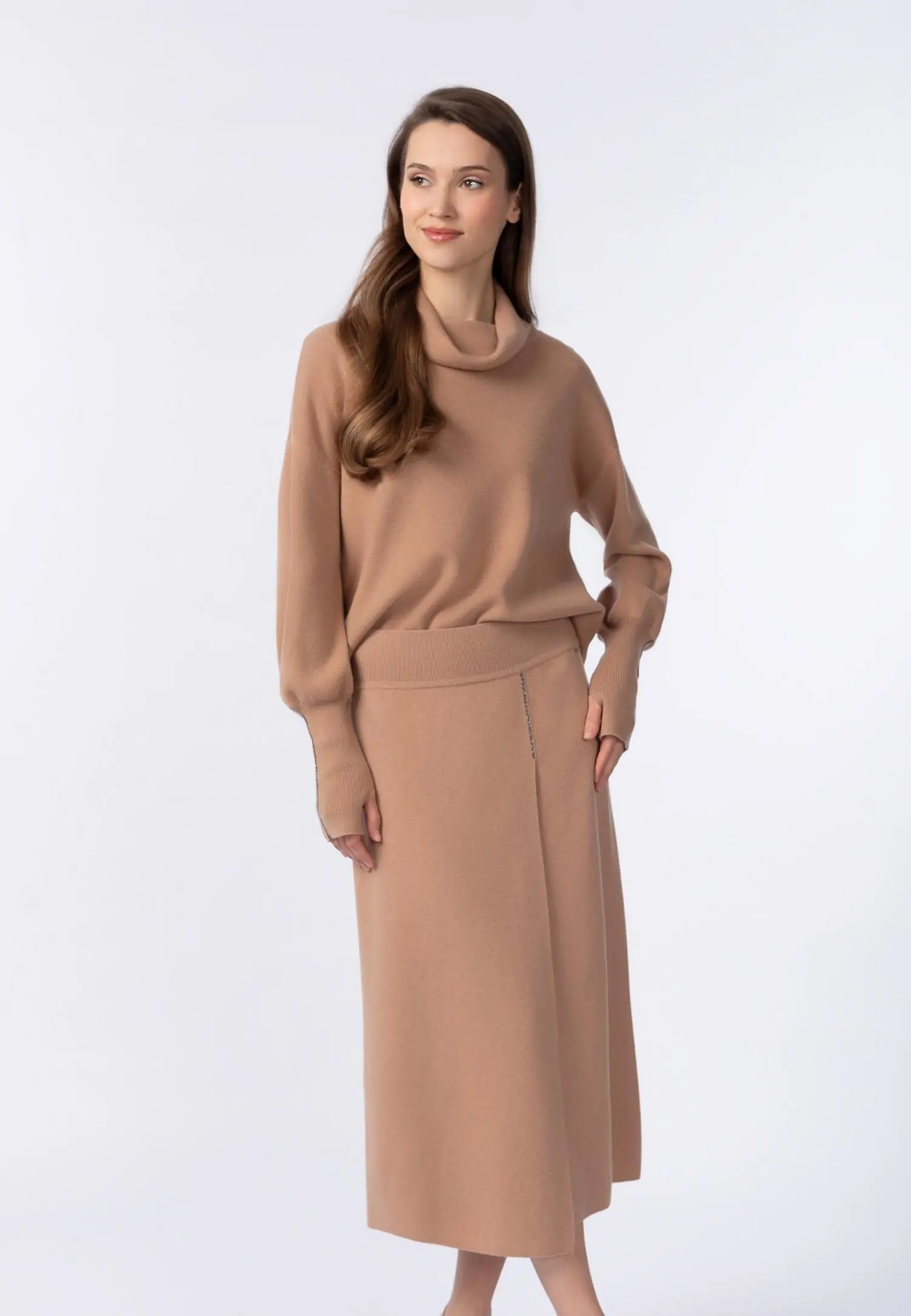 Elegantsete puhvvarrukatega sirgelõikeline veidi põlvedest ülespoole ulatuv tuunika on kootud luksuslikust kašmiiri- ja meriinovillasegu lõngast, mis annab tootele siidise pehmuse ja erakordse soojuse...