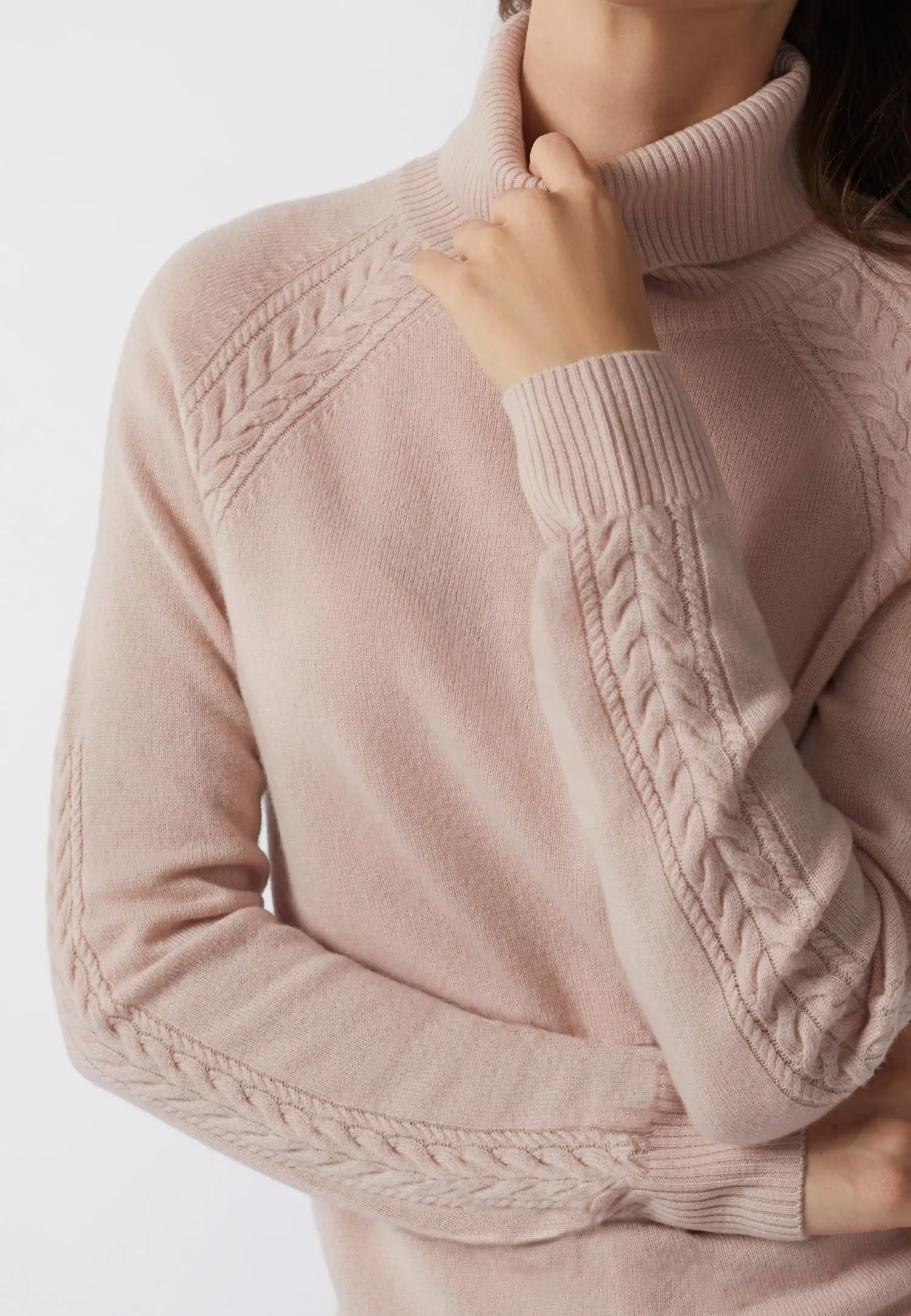 Mõnusalt kerge pikkade varrukatega kõrge kaelusega kampsun, mis on kootud luksuslikust kašmiiri- ja meriinovillasegu lõngast, andes tootele siidise pehmuse ja erakordse soojuse. Kampsunil on raglaanvarrukad ning soonikkoes kaelus, mansetid ja alläär, mis tagavad lisamugavuse. Palmikkoes detailid varrukatel ning esiosa raglaanijoonel lisavad luksuslikku elegantsi. Sobita see kampsun samasse seeriasse kuuluvate teiste toodetega. Uhkusega disainitud Eestis!