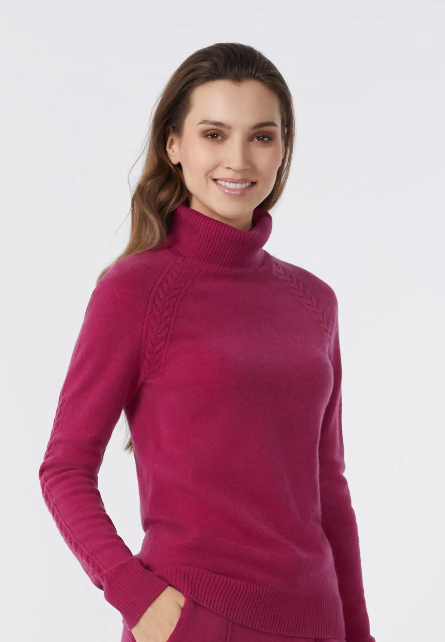 Mõnusalt kerge pikkade varrukatega kõrge kaelusega kampsun, mis on kootud luksuslikust kašmiiri- ja meriinovillasegu lõngast, andes tootele siidise pehmuse ja erakordse soojuse. Kampsunil on raglaanv...