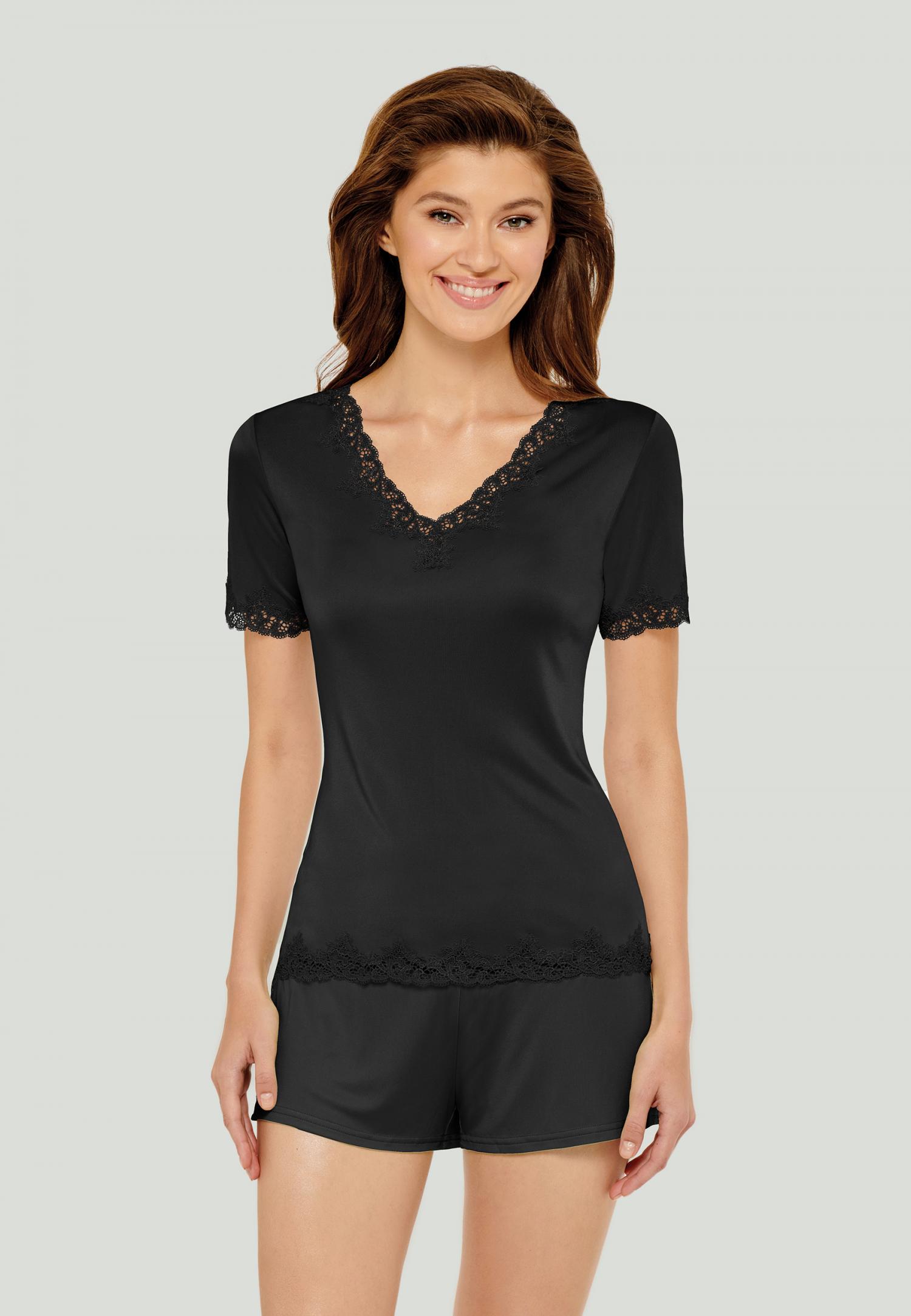 Hästi langevast siidi-ja viskoosegu trikotaažkangast õhuliselt kerge ja naiselik reglueeritavate õlapaeltega pluus/top. Eksklusiivsust lisab elegantne lillemotiiviga gipüürpits. Ideaalne igapäevaseks eriliseks tundeks- ei veni välja, ei kortsu ning aitab hoida ühtlast temperatuuri. Sobilik ka päevaseks kandmiseks kombineerituna ülerõivastega.