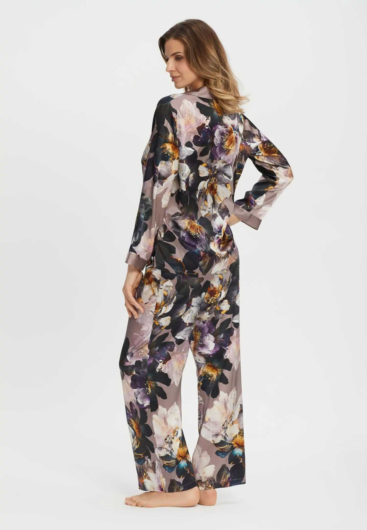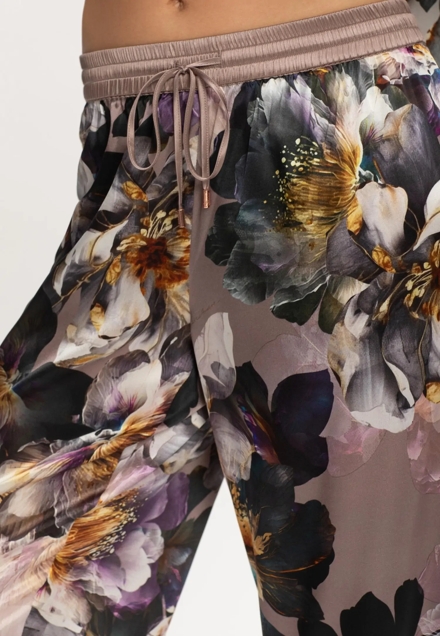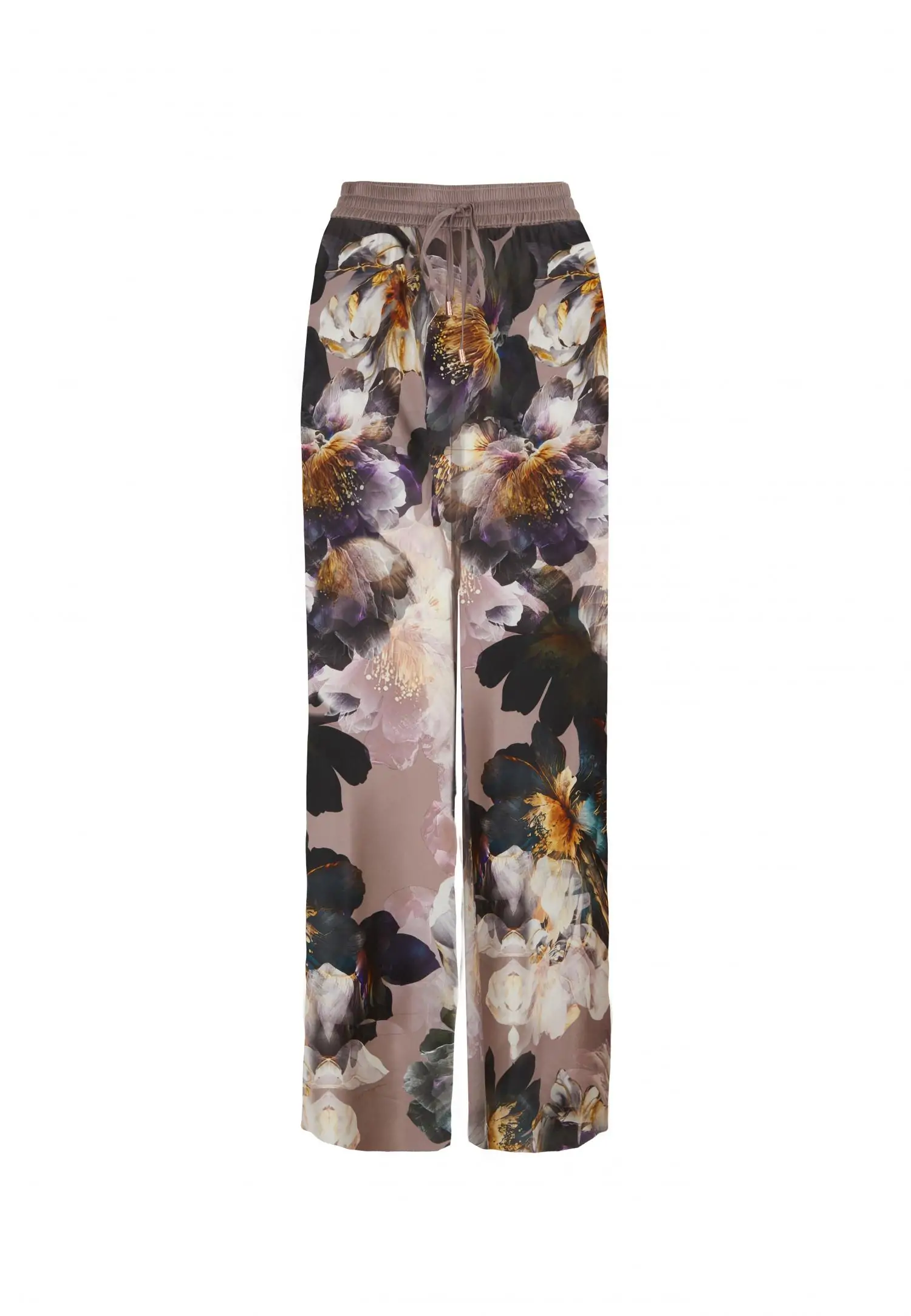 Lillemustrilised elastse vööjoonega pikad siidipüksid.