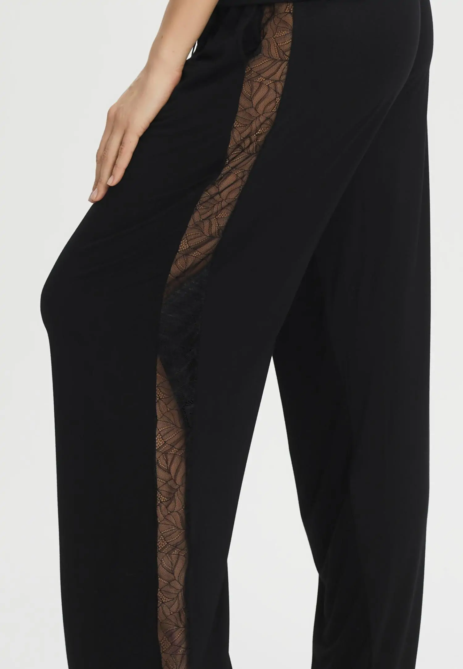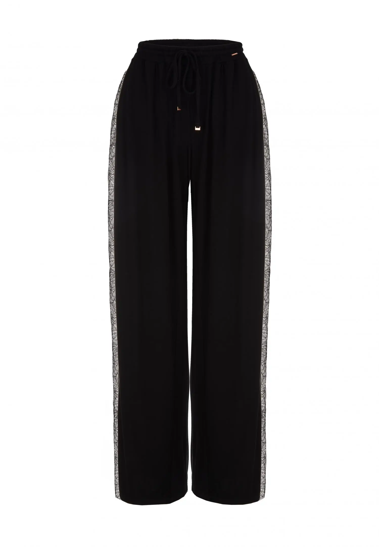 Viskoosist pikkadel pükstel on elastne vööjoon. Küljedetailid on elastsest pitsist ning küljeõmbluste vahel taskud.