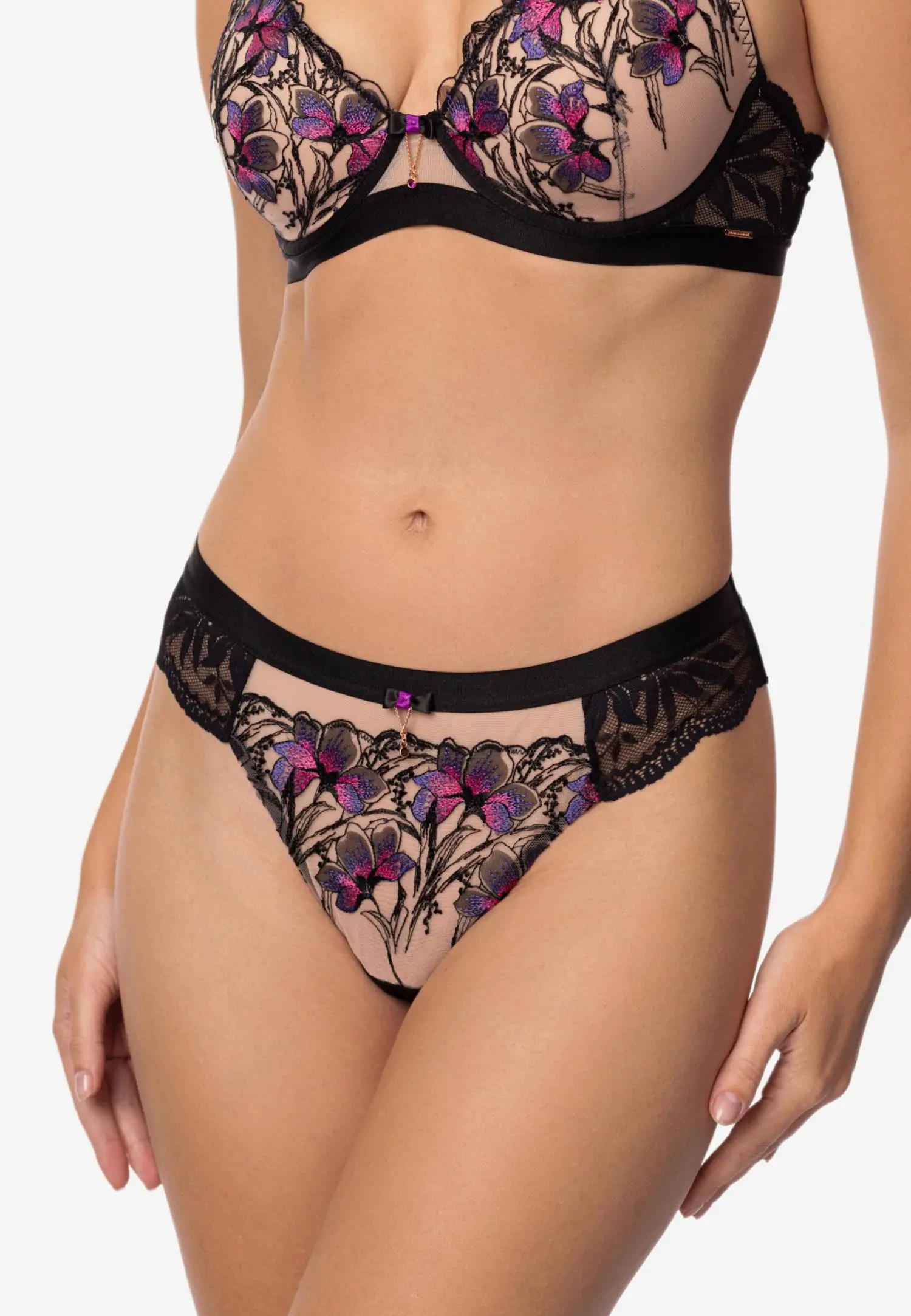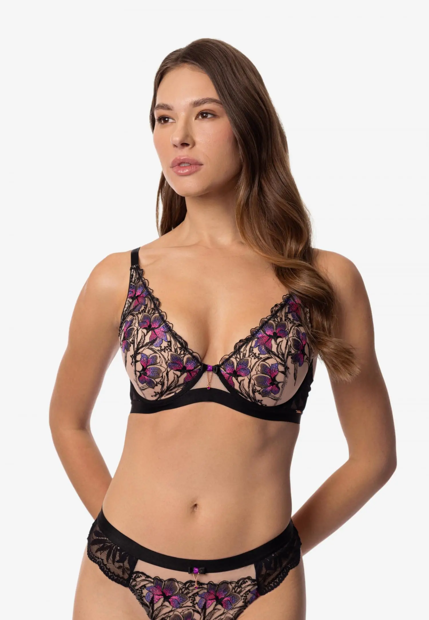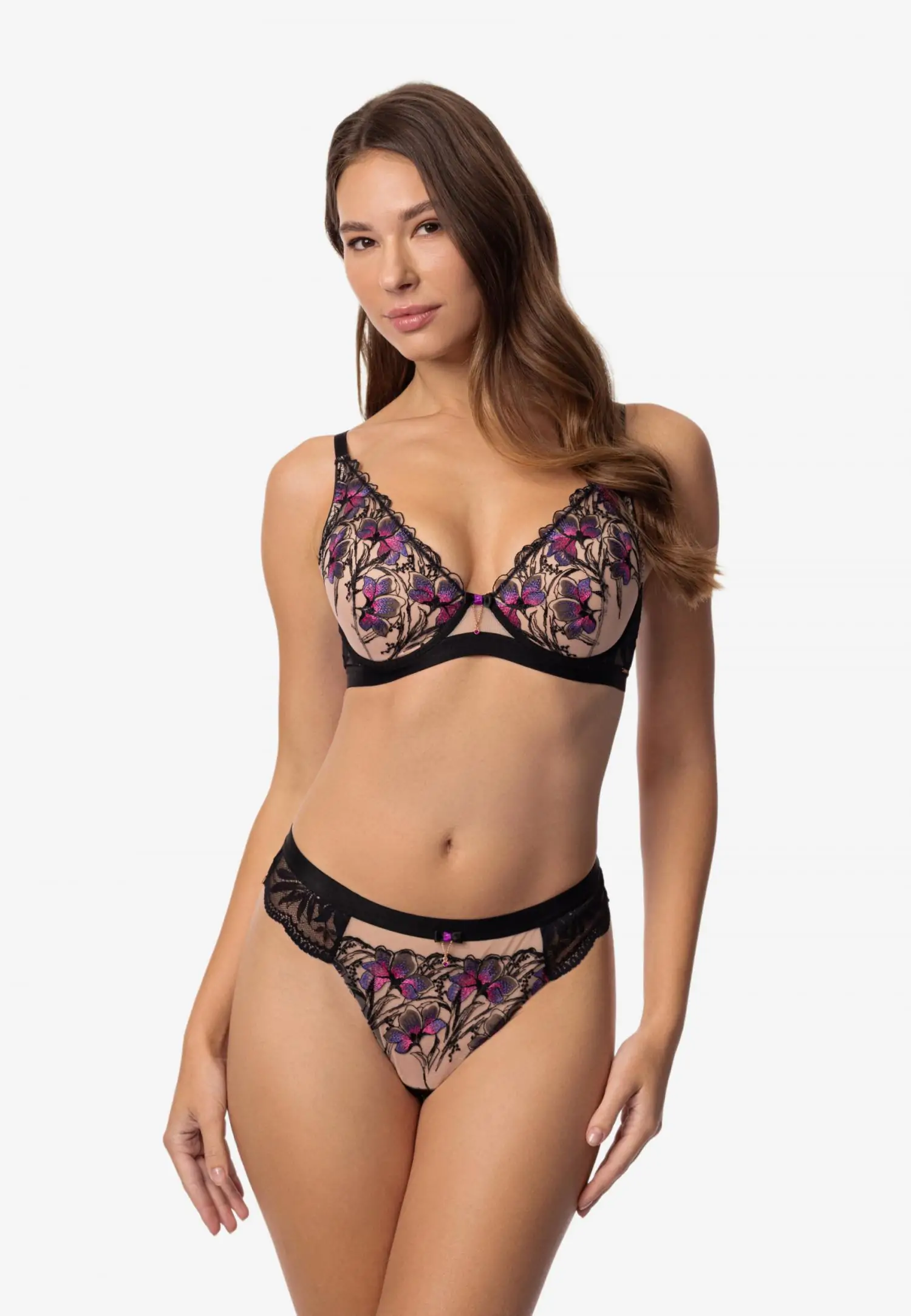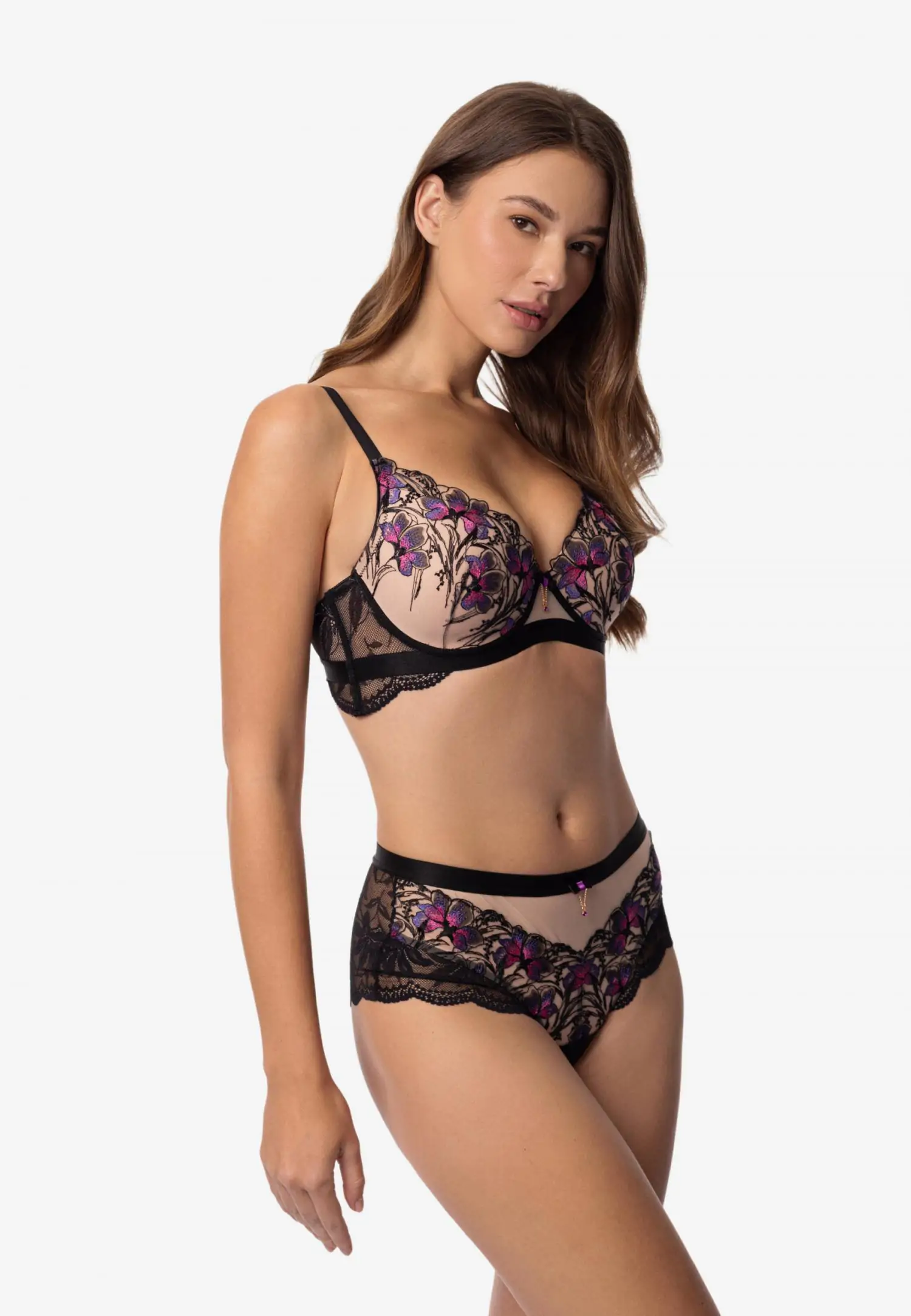 Tugikaartega pehme korviga rinnahoidja. Tumedal põhjal eristuv lilleline tikand ja must elastne pits loovad sügava ja kontrastse ilme. GLORIOUS on väljendusrikas ja enesekindel pesu, kus vorm ja detailid töötavad koos tugeva silueti nimel. Toode on disainitud ja arendatud Eestis!