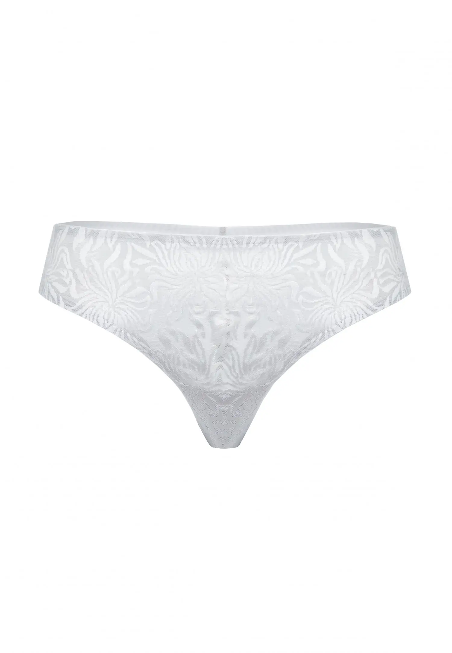String-lõikeliste pükste esiosa on pitskangast, tagadetail on kahekordsest kergelt läbikumavast võrkkangast, vööjoon pehme ja ilma kummiservata.