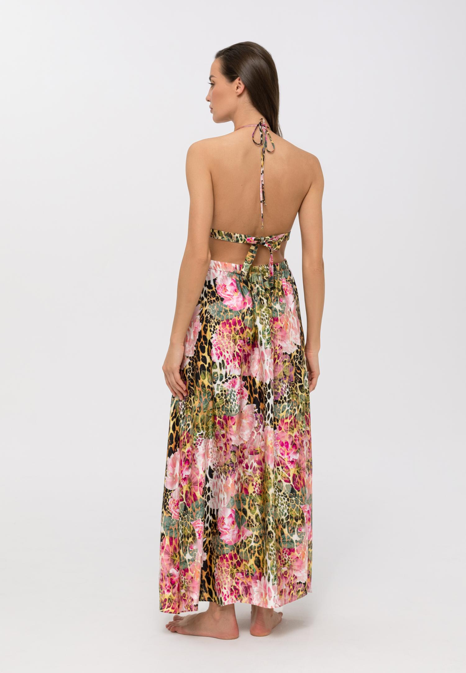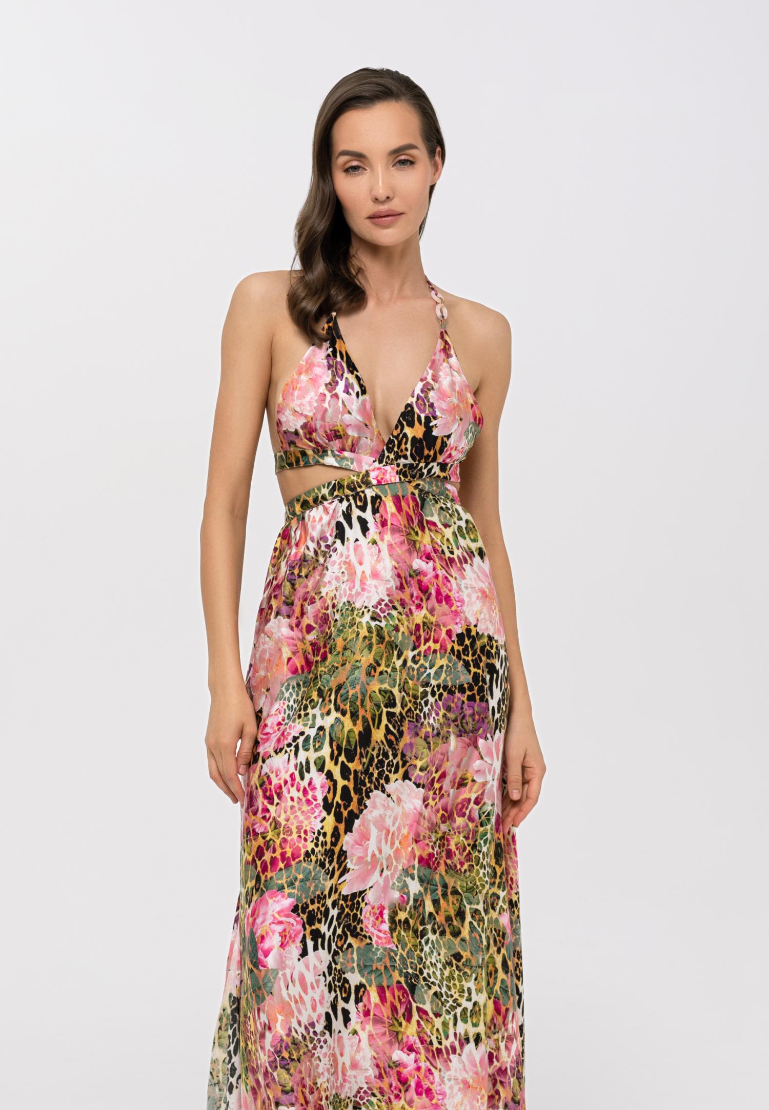 Pehmest ja kergelt läikivast kangast maxi pikkusega maani kleit. Avatud seljaosa, külgedel efektsed väljalõiked.