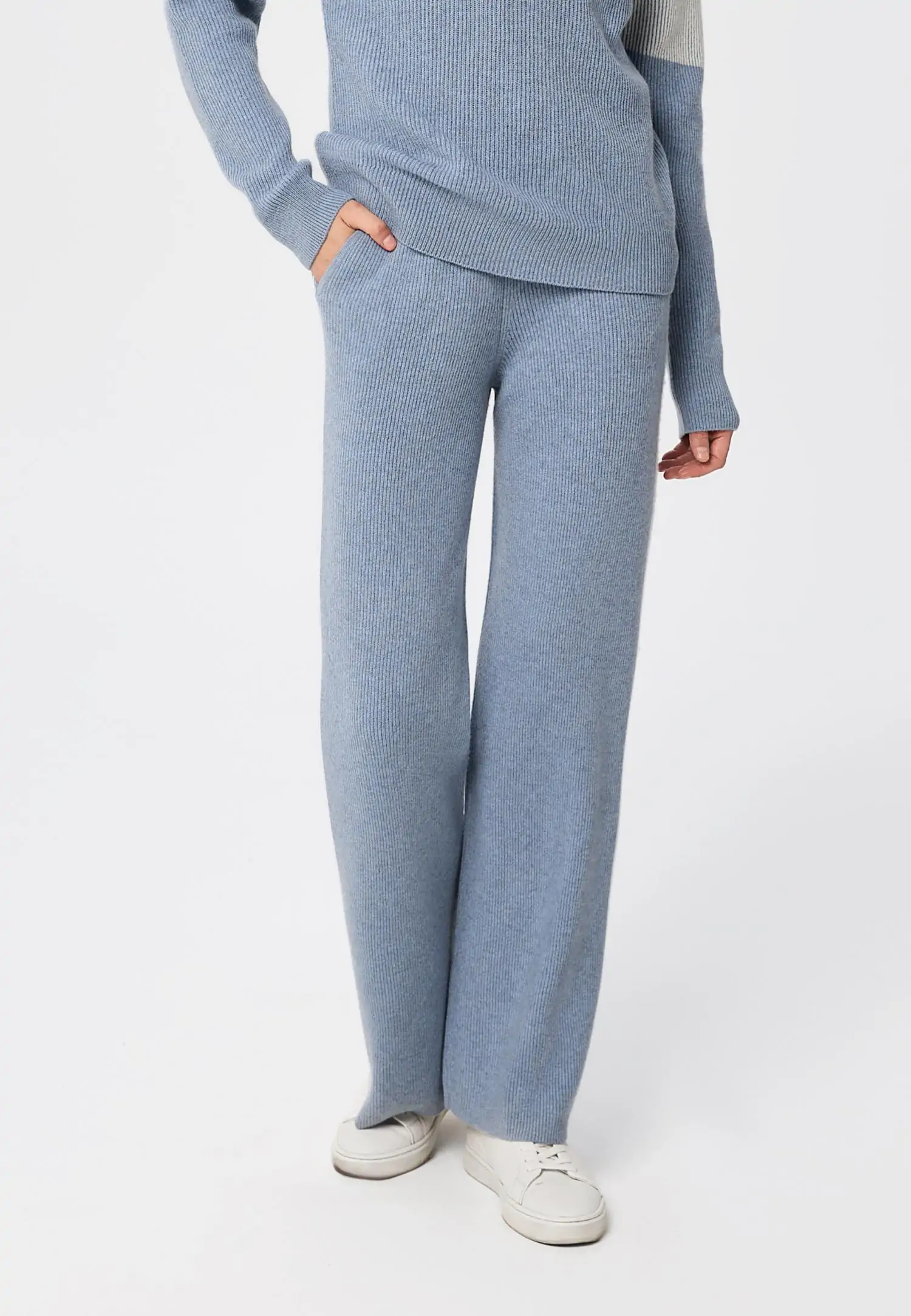 Теплые брюки из кашемира — идеальный баланс расслабленного кроя и утончённых деталей. Сочетание шерсти мериноса и кашемира дарит особенное ощущение тепла и нежности, позволяя ткани идеально ложиться по фигуре. Свободный силуэт дарит ощущение лёгкости, боковые разрезы на брюках создают актуальный эффект клеш, а боковые карманы добавляют практичности. Завершающий изящный штрих — карманы вручную украшены тонкой металлизированной тесьмой.