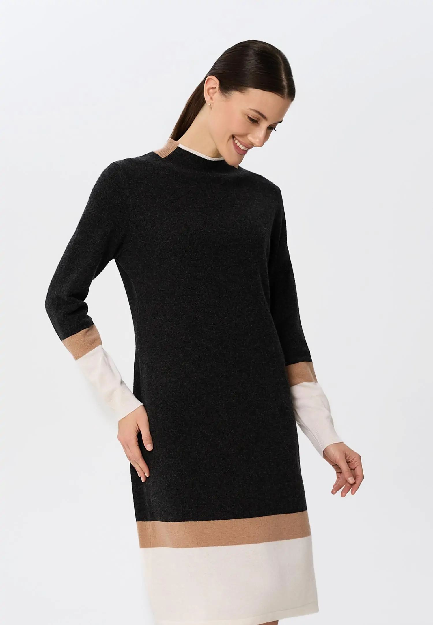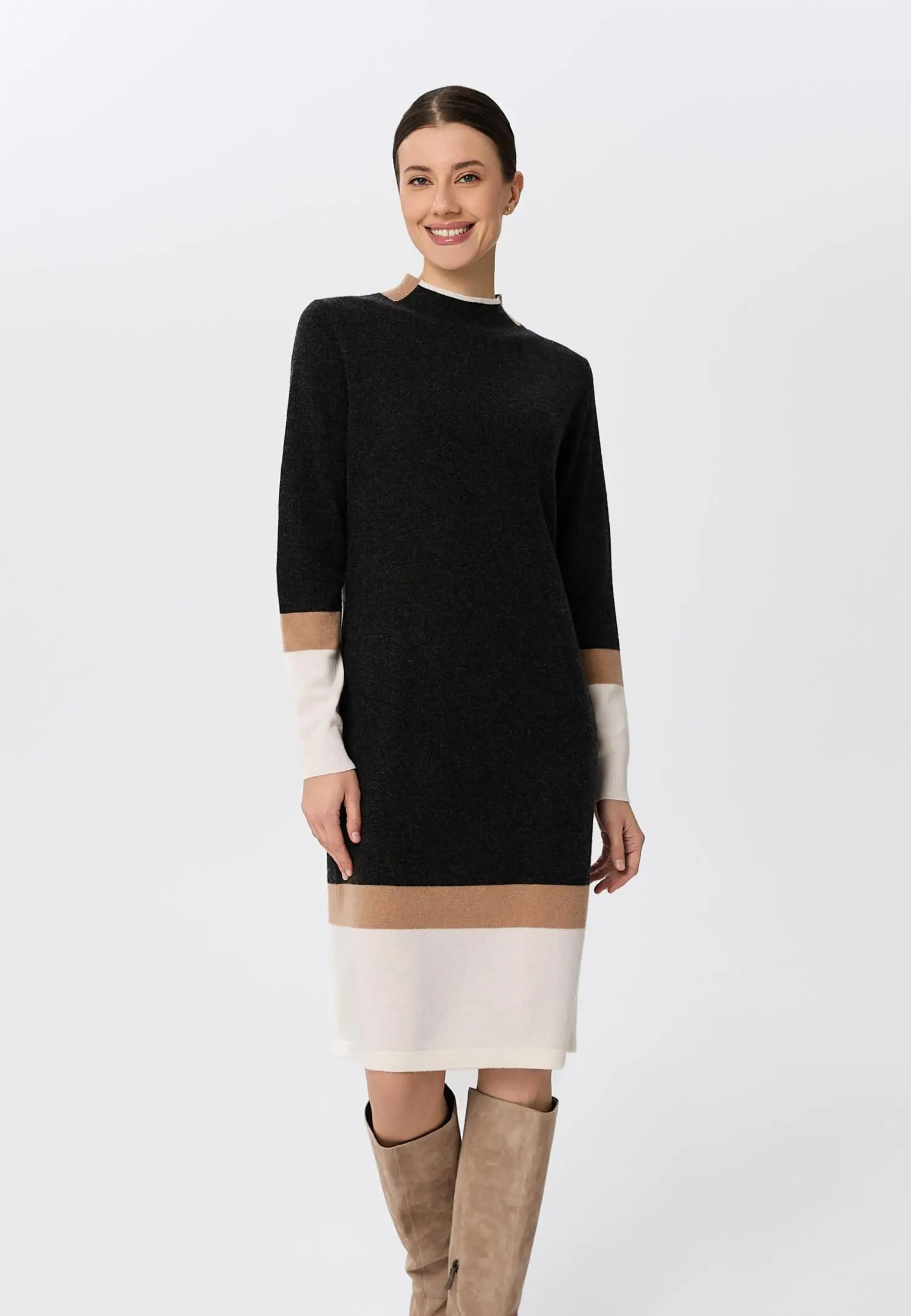 Женственная притягательность и непревзойдённый комфорт сочетает в себе платье-туника из серии SERENITY. Гладкая вязка из нитей кашемира и шерсти мериноса дополнена лаконичным цепным стежком, напоминающим миниатюрную косичку. Плавные линии рукавов, украшенные акцентными деталями и контрастный кант по центру создают стройный элегантный образ. Воротник-стойка с плоским шнуром и манжеты выполнены в технике «резинка» для уверенной мягкой посадки. Длина чуть ниже колен обеспечит максимальное удобство и защитит от холодов.