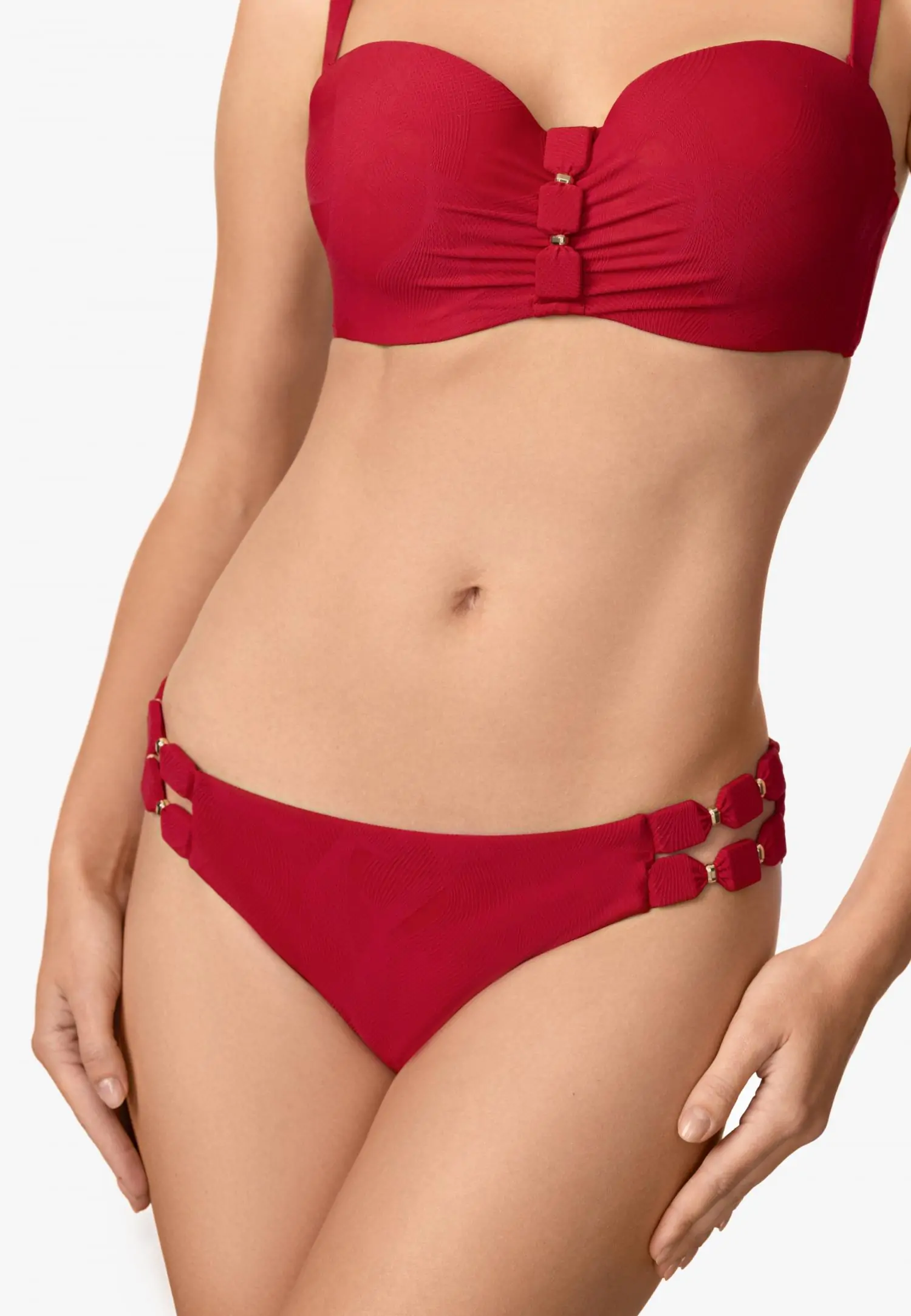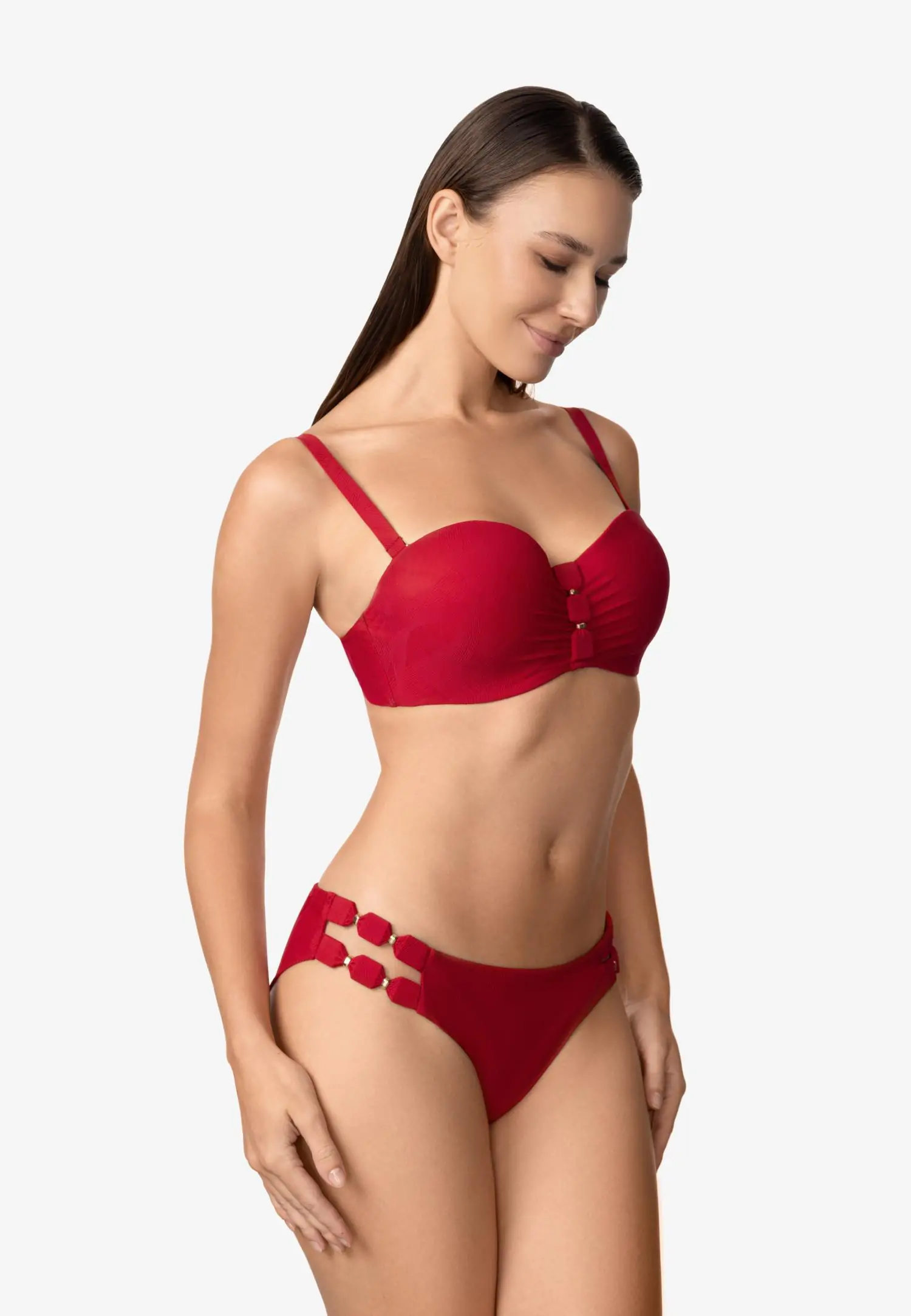 Мягкая чашка на каркасной поддержке, дублированная эластичной сеткой, обеспечивает дополнительную поддержку и комфорт. Аксессуар по центру между чашек добавляет изысканный акцент и подчёркивает линию декольте.