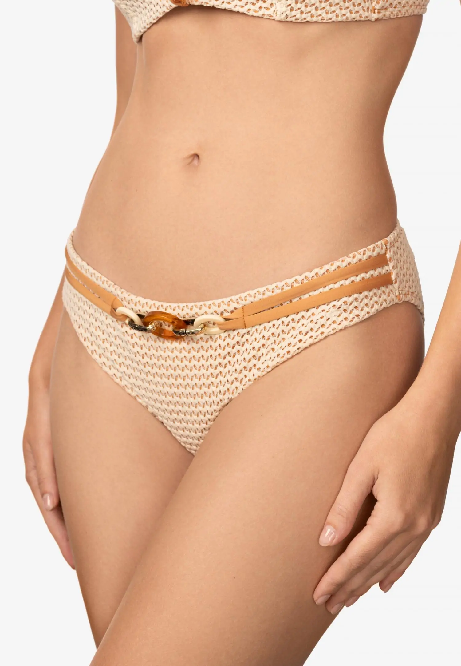 Плавки женские с регулируемой высотой линии талии. Высоту посадки можно регулировать за счет широкого пояса-отворота, поднимая или опуская пояс вниз. Классический вырез по линии бикини. Для большей уверенности все детали продублированы подкладкой.