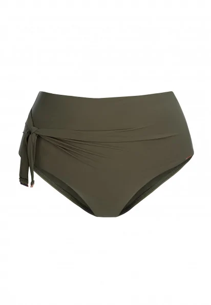 Плавки женские с высокой посадкой. Декоративная сборка и съемная завязка на одном боку. Низкий вырез по линии бикини. Для дополнительной поддержки все детали продублированы подкладкой.