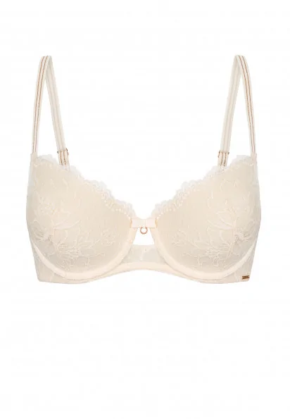 Серия DREAMER - праздник безупречного вкуса: роскошное кружево с благородной матовой текстурой, дополняют отделки узкой эластичной тесьмой с золотой нитью и миниатюрные аксессуары из розового золота. Красота, мастерски доведенная до идеала.
