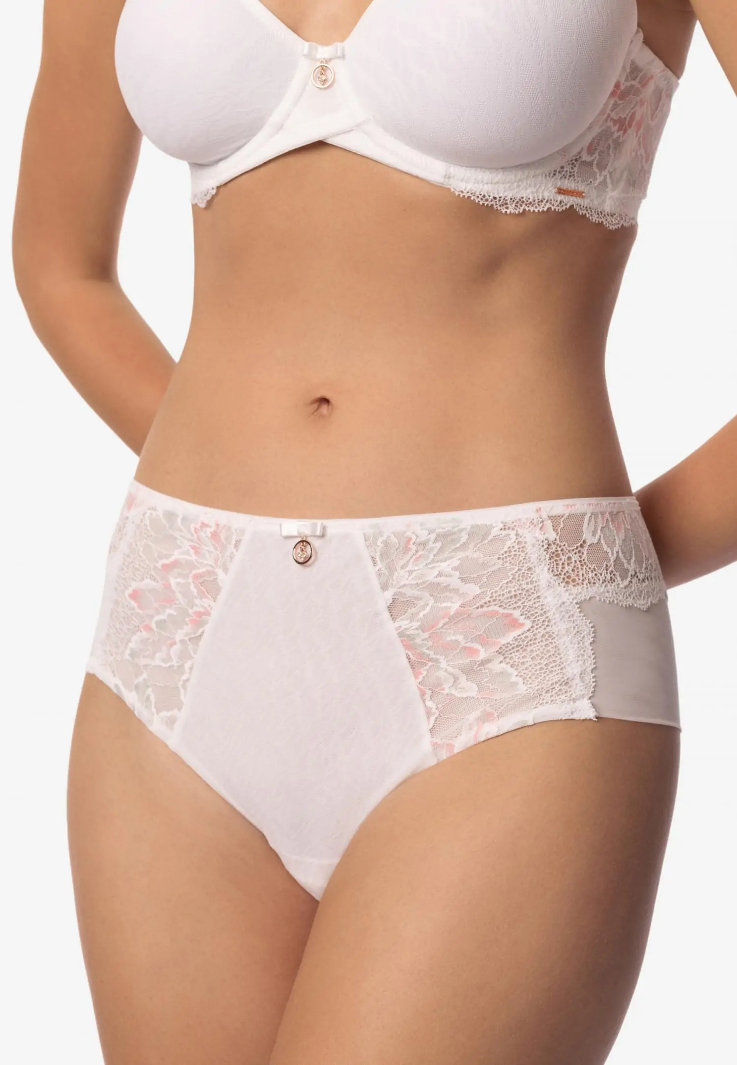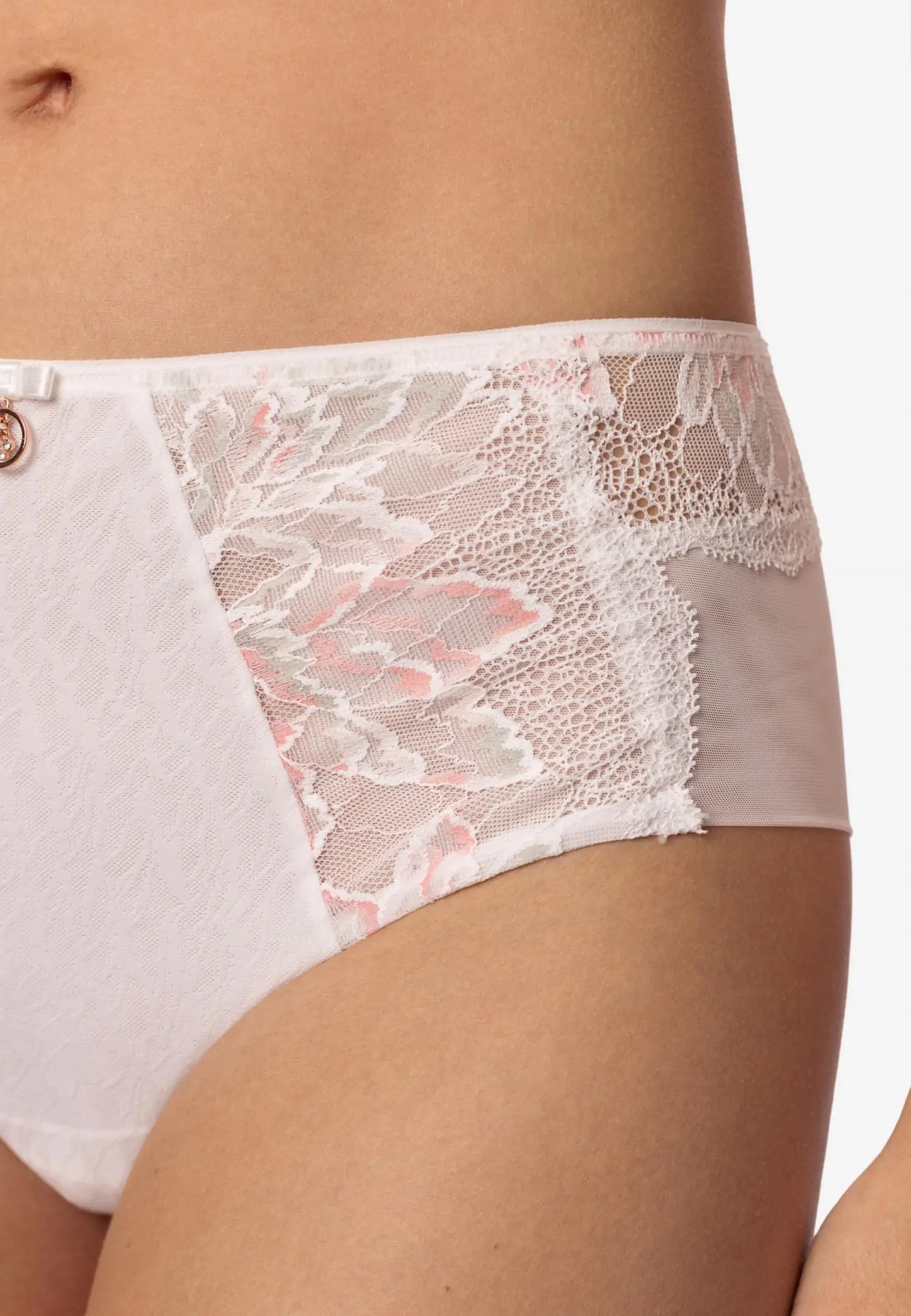Трусы-хипстеры со средней линией талии. Передняя деталь из кружева и микрофибры. Задняя деталь: сочетание кружева и эластичной сетки. Ажурные края. Мягкий эластичный пояс из микрофибры с резинкой внутри.