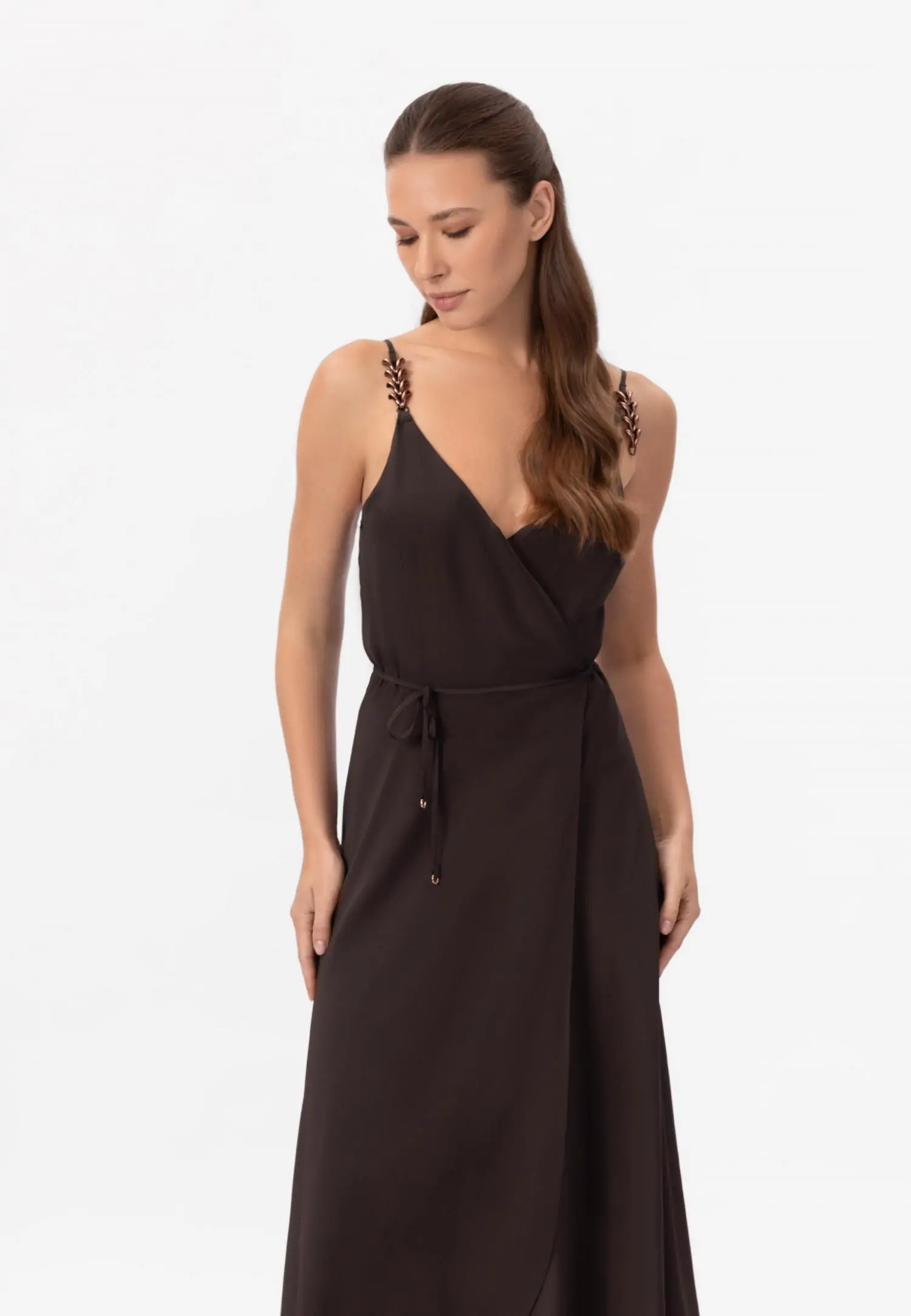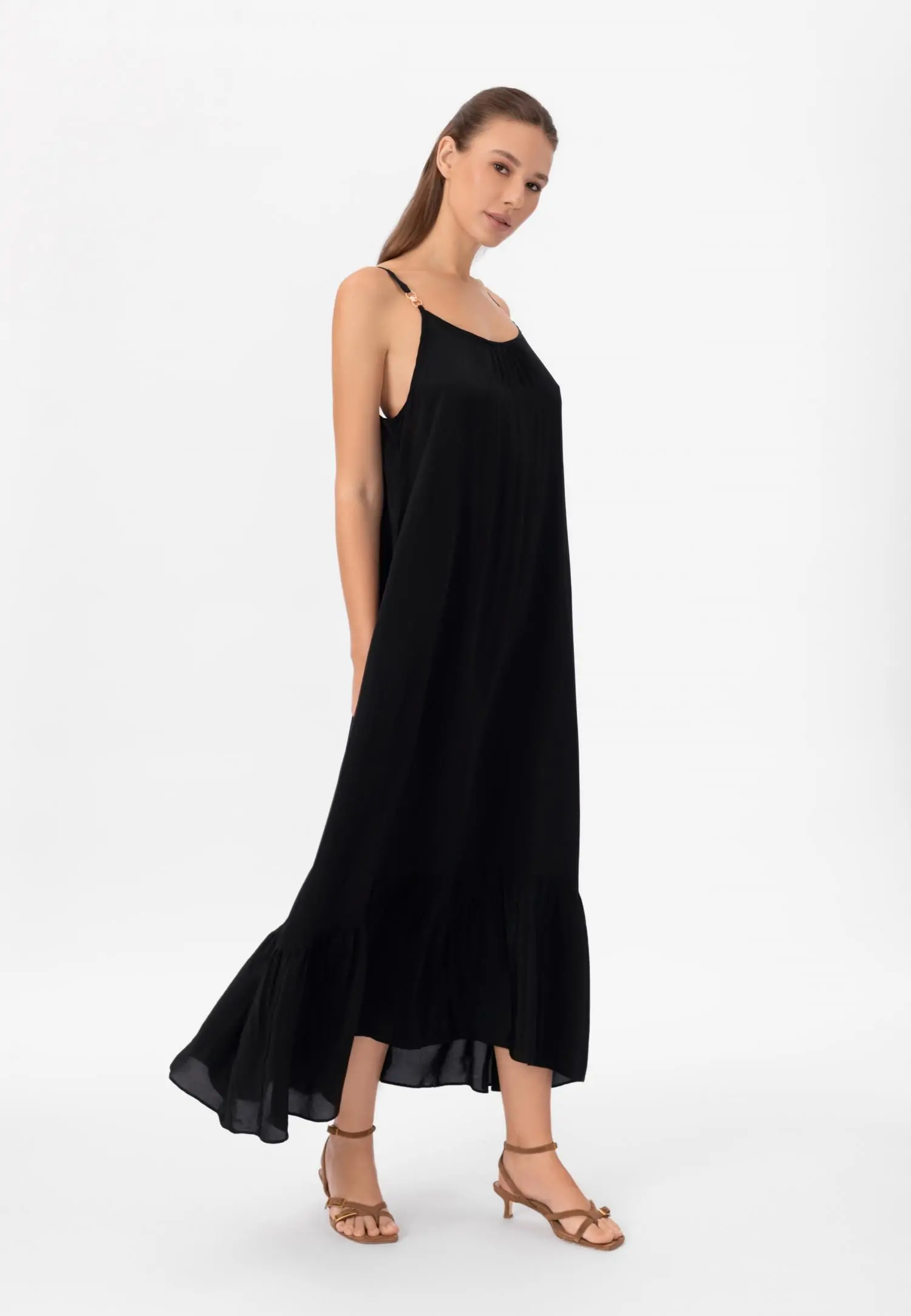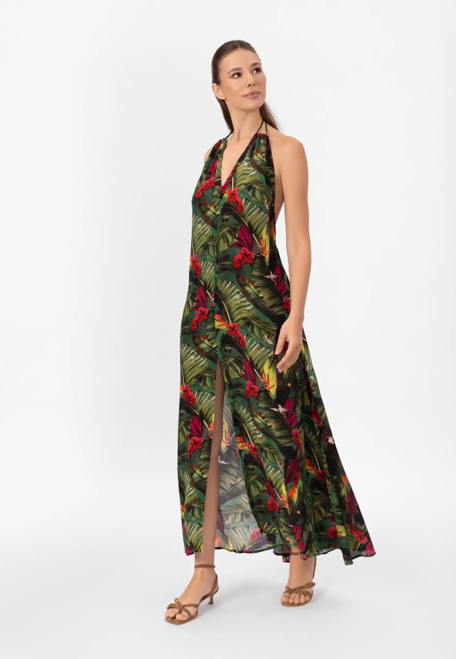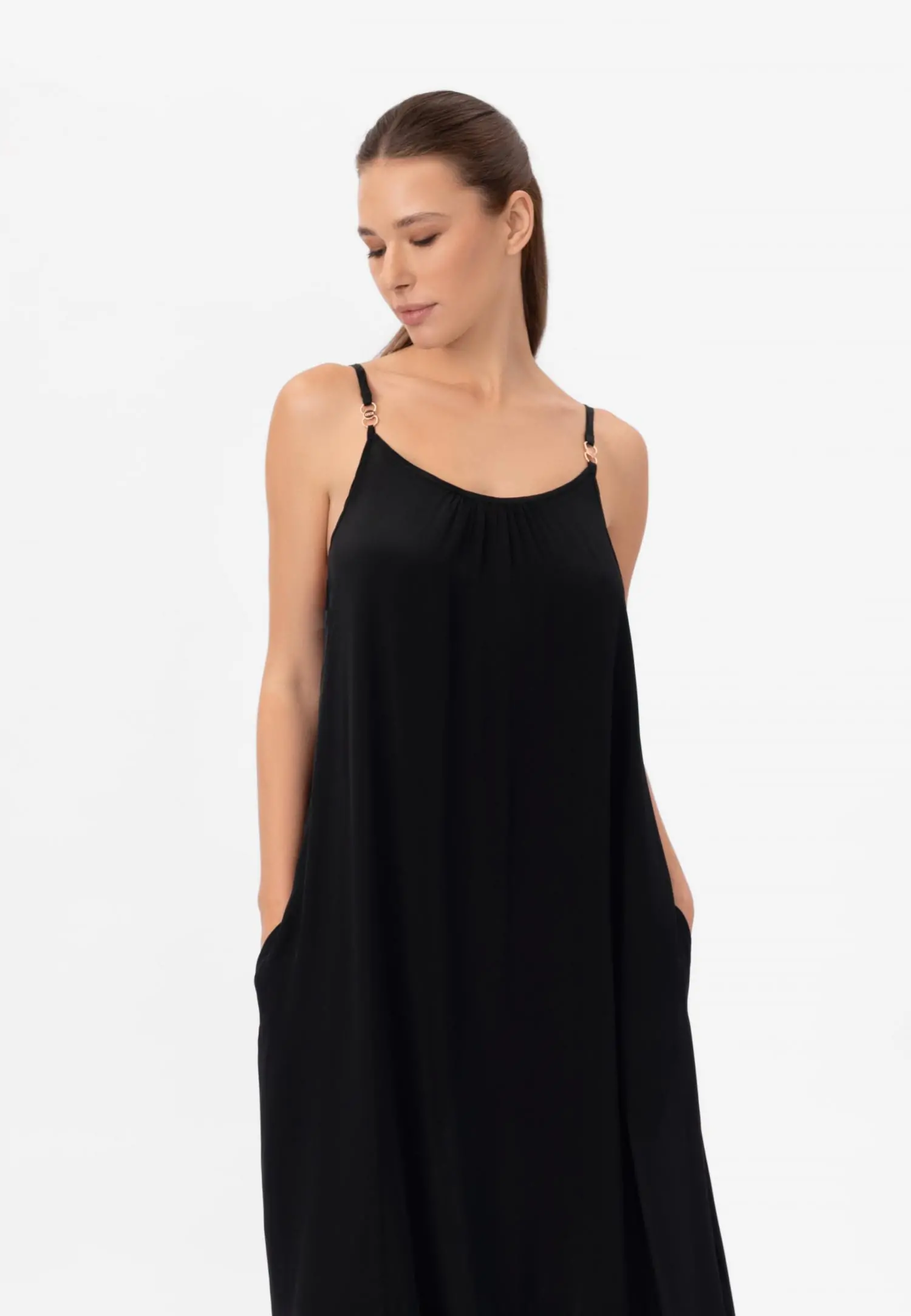 Длинный сарафан свободного кроя. Удобные боковые карманы и бретели, завязывающиеся вокруг шеи, придают ему легкость и непринужденность. Без подкладки, этот сарафан идеально подойдет для жарких дней, позволяя вам чувствовать себя комфортно и стильно. Добавьте его в свой гардероб и наслаждайтесь каждым моментом!