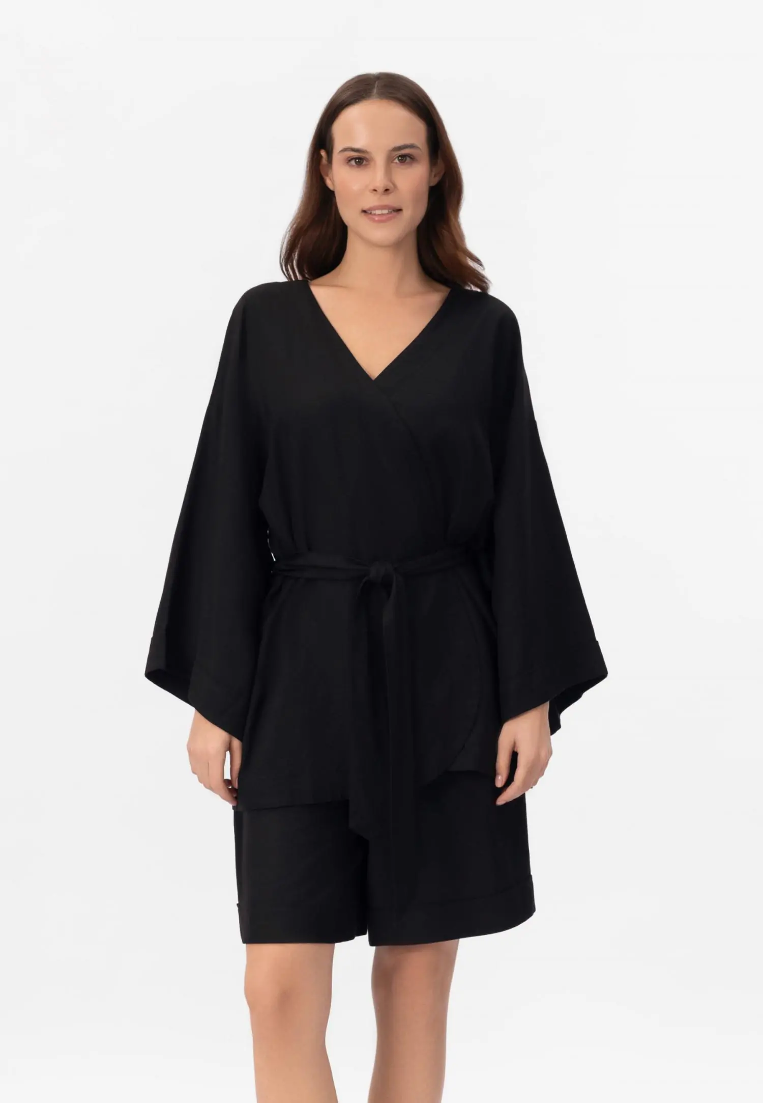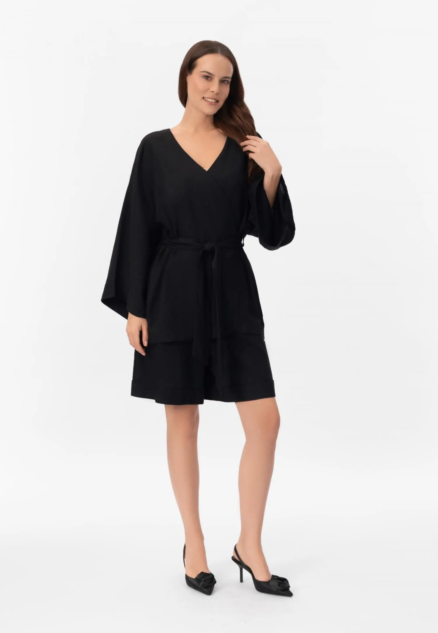 Платье-рубашка на пуговицах из дышащей, мягкой вискозной ткани. Актуальная длина миди. Закругленный подол с разрезами по бокам. Отложной воротник. Длинные рукава с манжетами на пуговицах. Длина рукава регулируется патой с застежкой. Съемный пояс с золотыми пряжками.