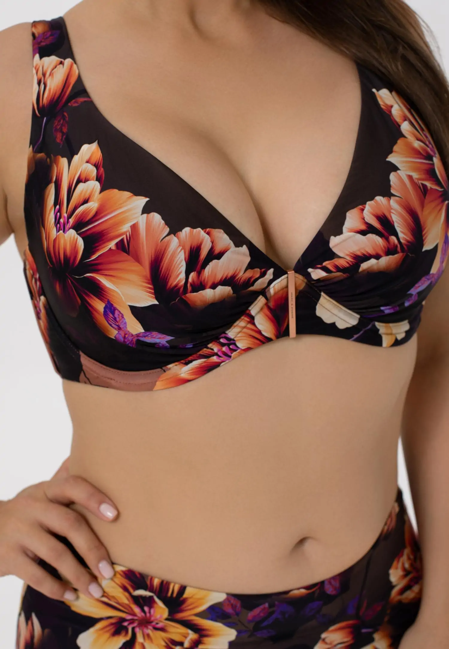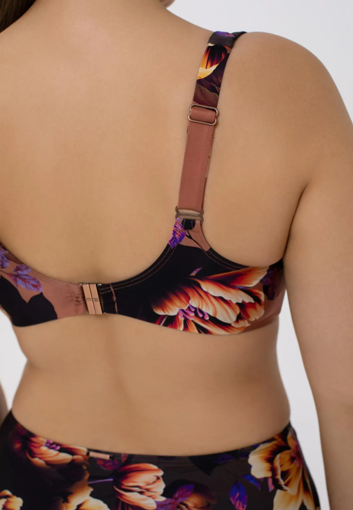 Tugikaartega ja täielikult pehme korviga bikiinitopp, millel ei ole sees polsterdust. Hingav ja kiiresti kuivav avara V-lõikelise dekolteega mudel. Reguleeritavad laiemad õlapaelad. Seljaosal niklivabast metallist kinnitus. Toote loomisel on kasutatud fikseeritud mustri paigutust, rõhutades disaini eripära ja terviklikkust.
