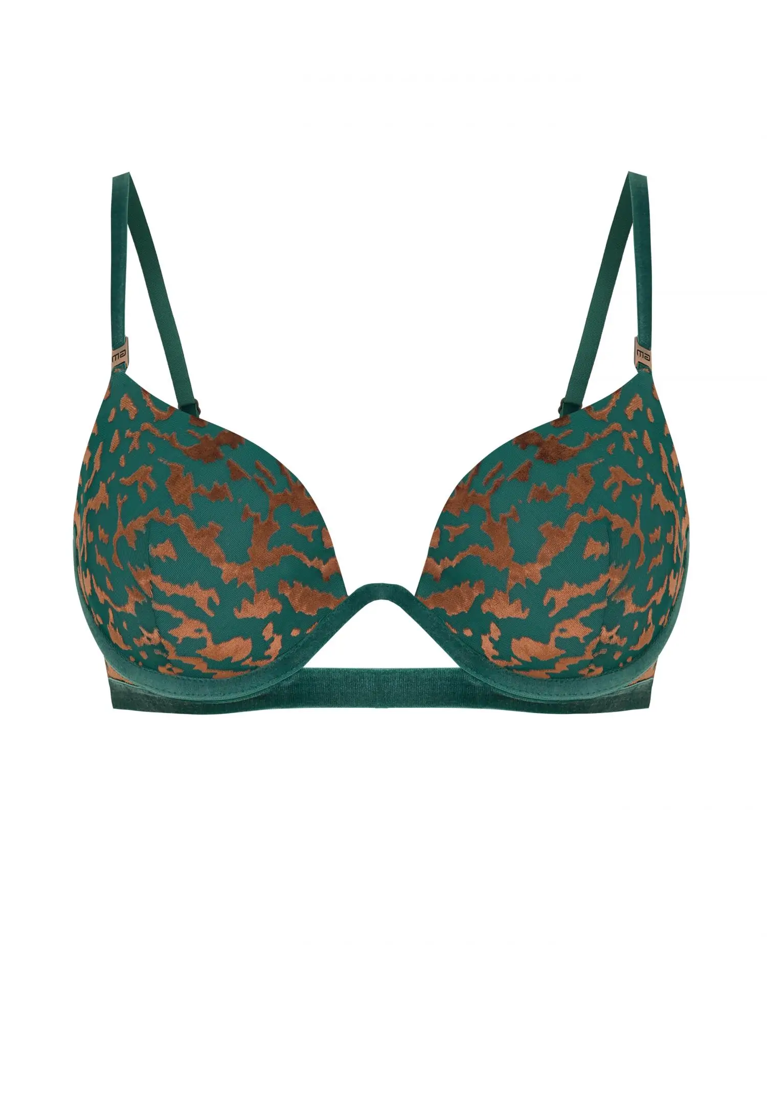 Vormitud korvide ja tugikaartega bikiinitopp, millel on eemaldatavad push-up padjakesed. Toestav mono-tugikaar on tõeliselt trendikas ning tekitab seksika kolmnurkse väljalõike. Reguleeritava pikkusega õlapaelad. Seljaosal niklivabast metallist kinnitus.