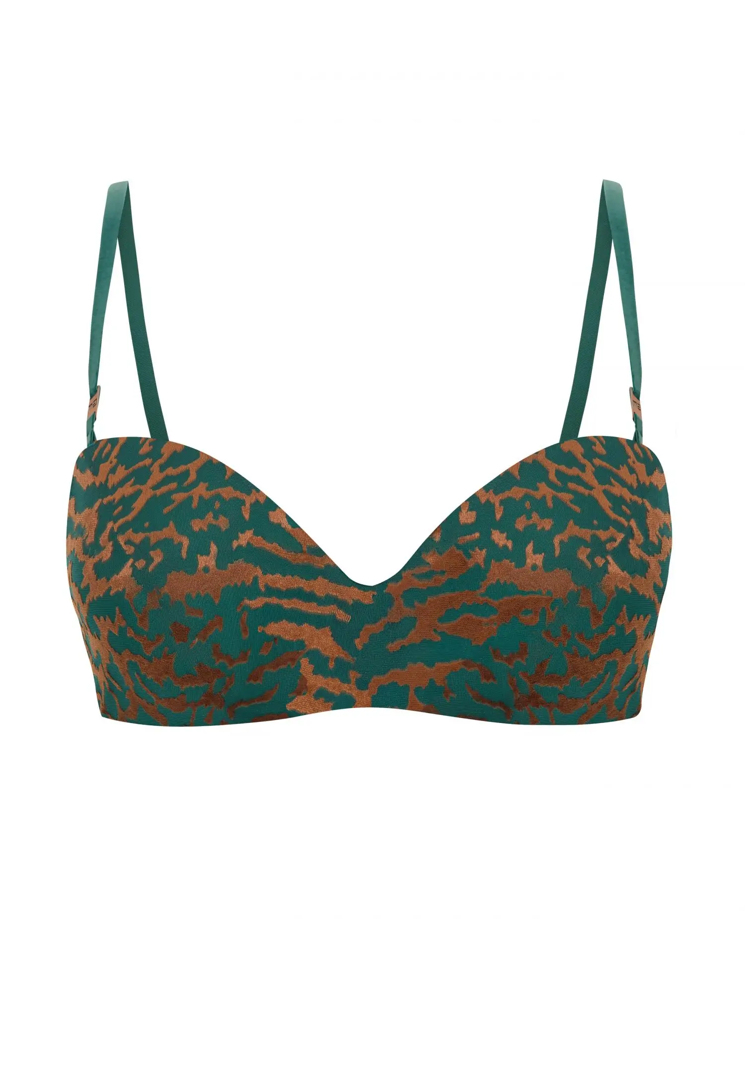 Ilma tugikaarteta push-up balconette stiilis bikiinitopp. Reguleeritavad ja eemaldatavad õlapaelad. Silikoonribad ees ja taga pakuvad kindlustunde õlapaelteta kandmisel. Seljaosal niklivabast metallist kinnitus.