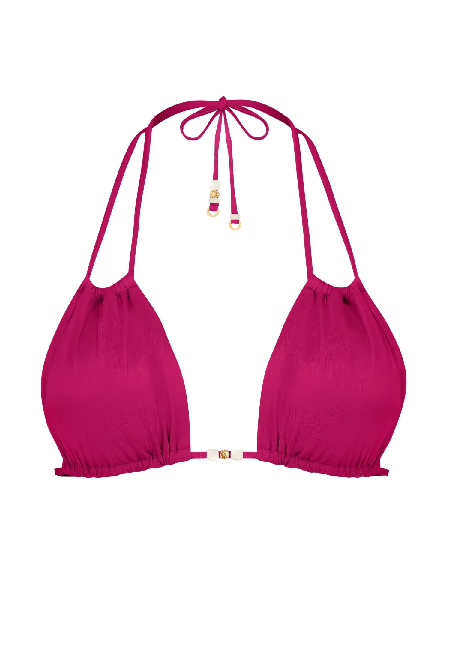 Tugikaarteta pehme kolmnurkne bikiinitopp, millel on eemaldatav polsterdus. Reguleeritavad ja kaela taha ning seljale seotavad paelad.