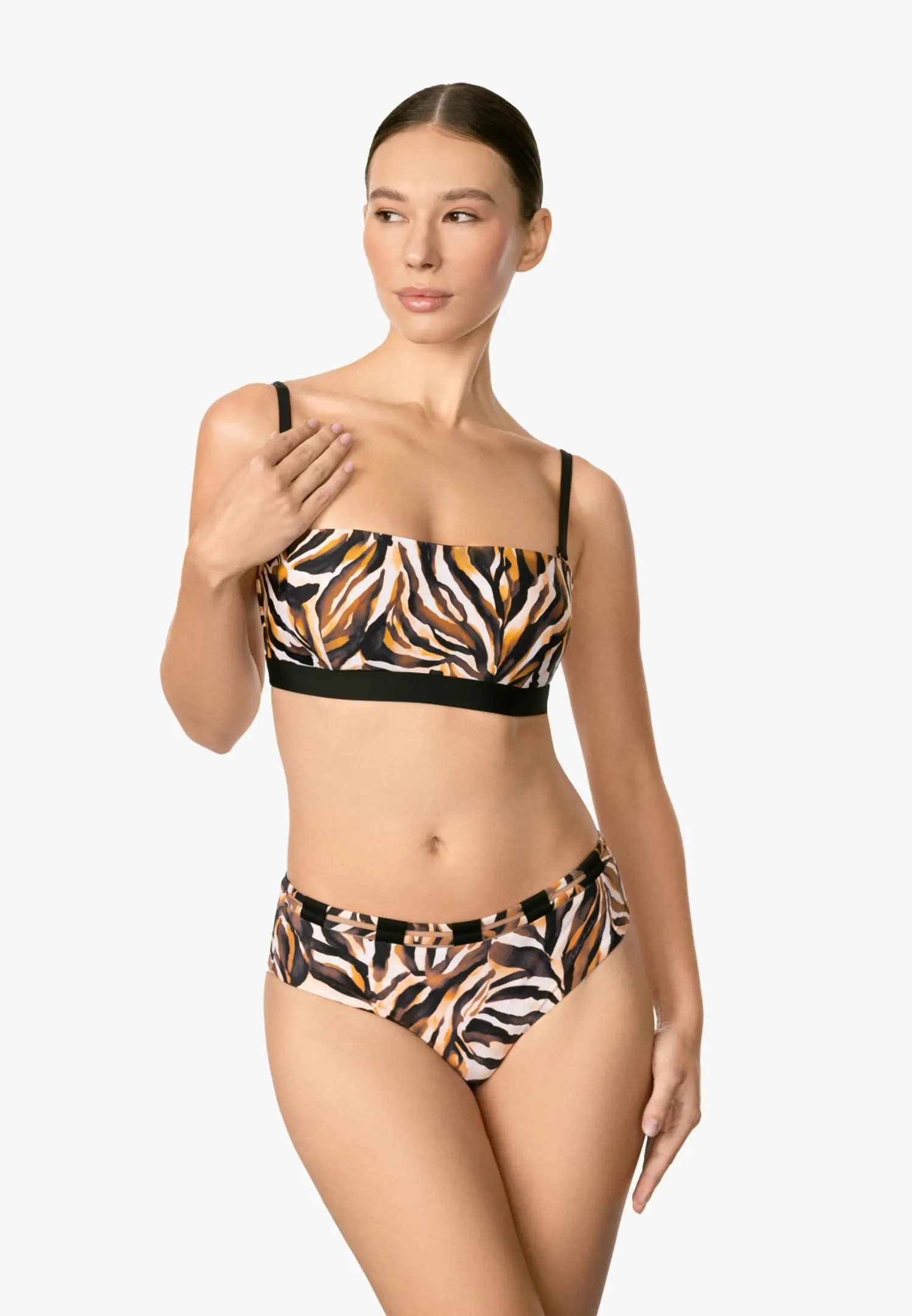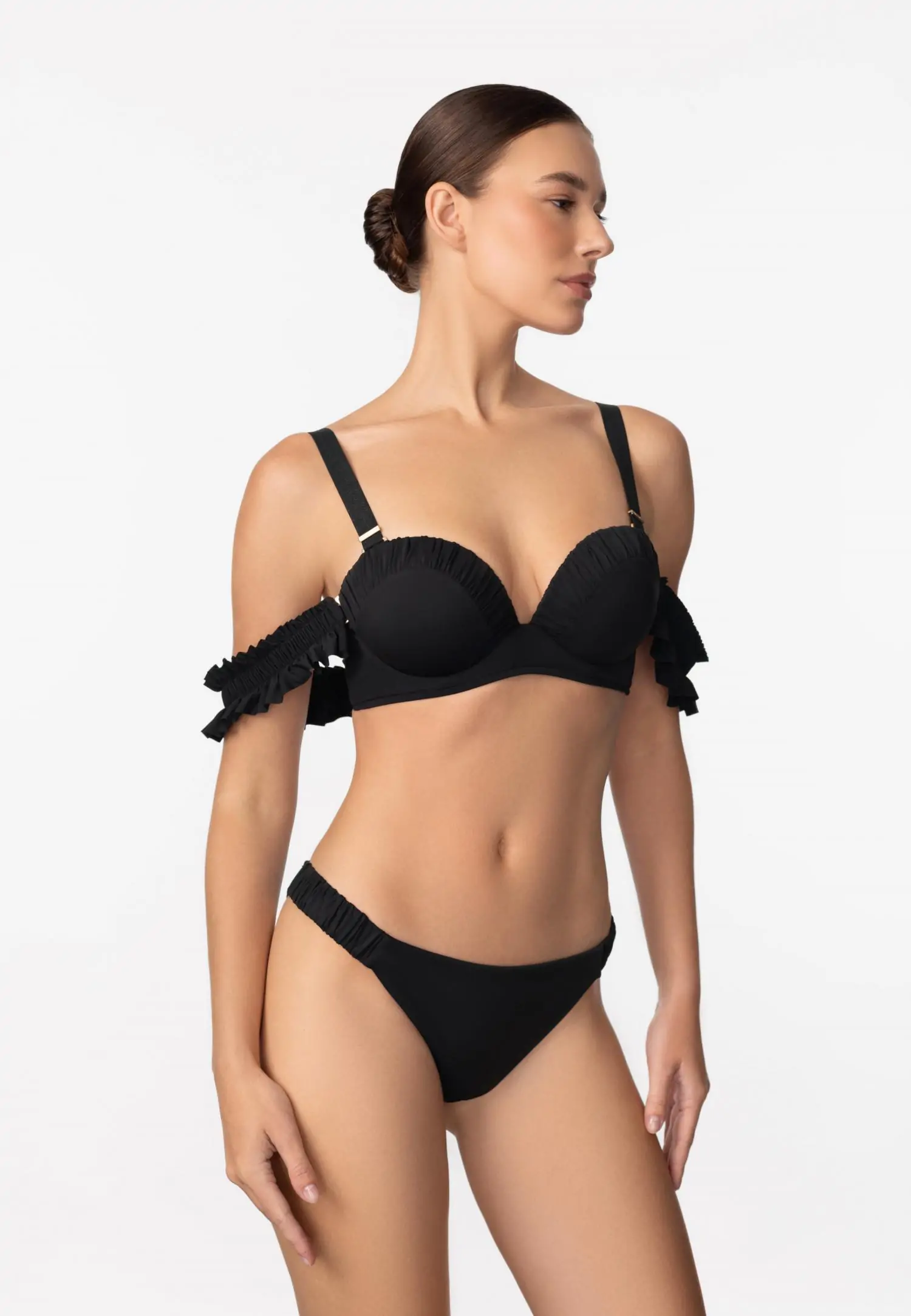 Ajatu ja elegantne trikoo vormitud bandeau-lõikega korvidega, mis loovad kauni silueti ja pakuvad kindlat toestust tugikaartega lahenduse abil. Eemaldatavad ja reguleeritavad õlapaelad annavad kandmisvabaduse, samal ajal kui tasakaalustatud lõige ja suurema katvusega alaosa tagavad mugava ja enesekindla istuvuse. Vooder nii esi- kui ka tagaküljel, pakkudes lisamugavust, ideaalset katvust ja toestust. SO CHIC seeria puhas disain ja mati musta tooni sügavus muudavad selle mudeli väärikaks ja stiilseks valikuks.Toode on disainitud ja arendatud Eestis!